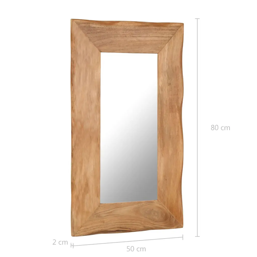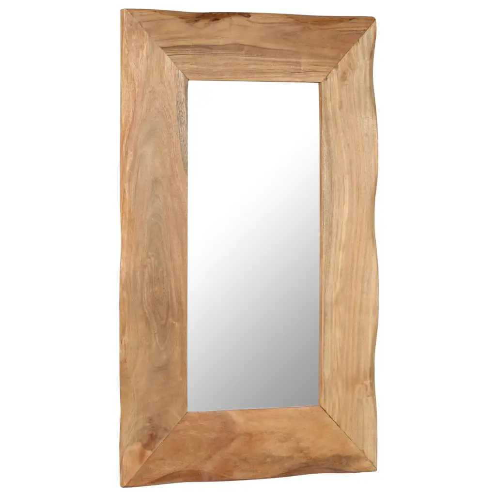 This beautiful wooden cosmetic mirror adds a touch of vintage charm to your home decor. Framed with sturdy and durable acacia wood, this unique mirror creates a retro style look in any space. The perfect craftsmanship carried out on the solid acacia wood adds even more charm to this beautifully-designed mirror. It can be used in the bathroom or hallway, serving as a cosmetic mirror, a decoration mirror or a hall mirror. No assembly is required. Furthermore, it can be placed both in a horizontal or vertical position thanks to the double hangers featured at the backside of the mirror. Important note: The colour and grain of the wood may vary from piece to piece, making each of our mirrors unique; the delivery is random.