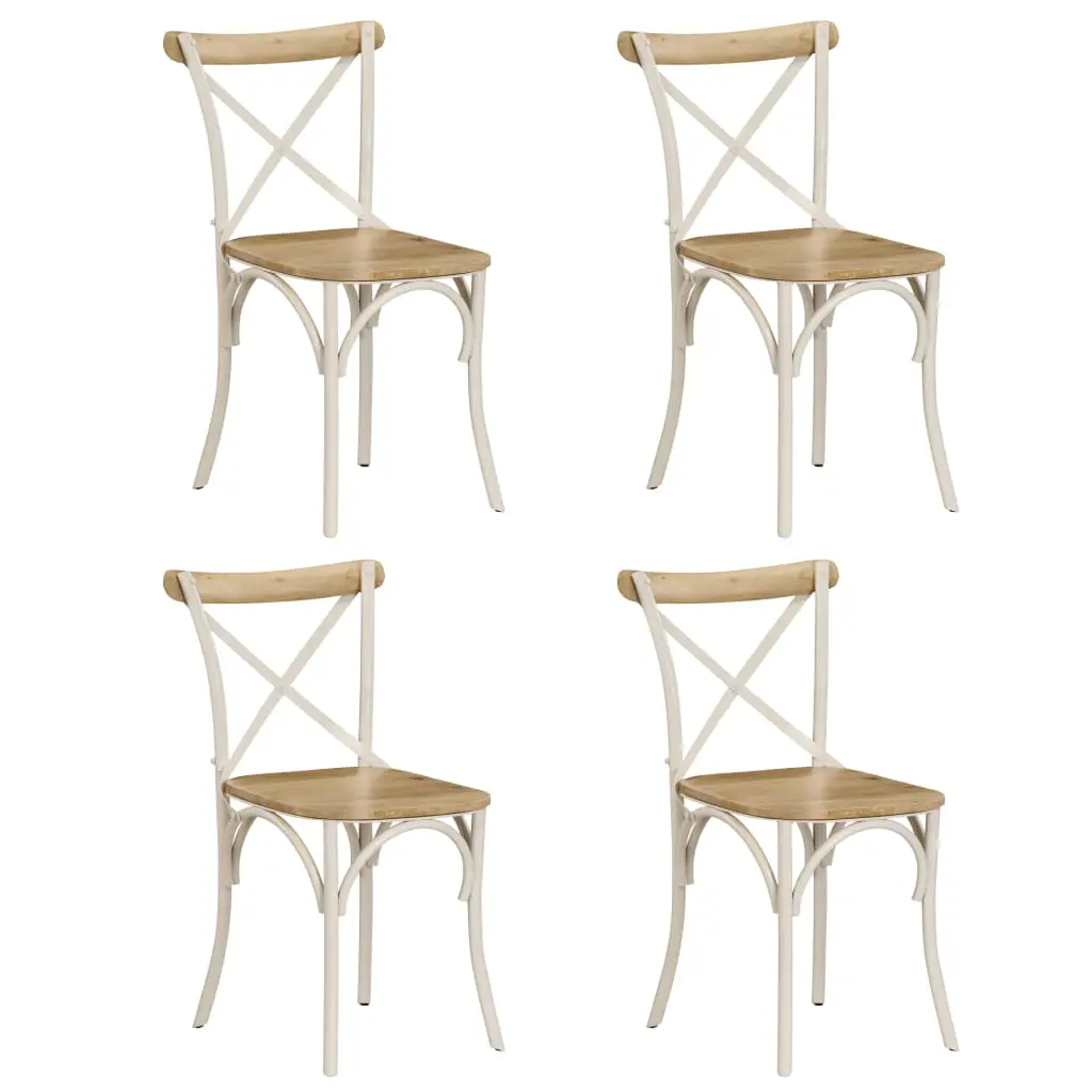 This antique-style wooden 4-piece dining chair set will make an attention-grabbing addition to your dining room. Their steel frame makes the chairs considerably stable and sturdy. These classic-style chairs are made of solid mango wood, meaning that every piece of furniture is sui generis and slightly different from the next. Mango wood is solid, stable, durable, as well as glamourous. The chair set is fully handmade and every step of the process is carried out with the greatest care. The open back design add to their spectacular retro style. Important note: Colours vary from piece to piece, making each of our dining chairs unique. Delivery is random.