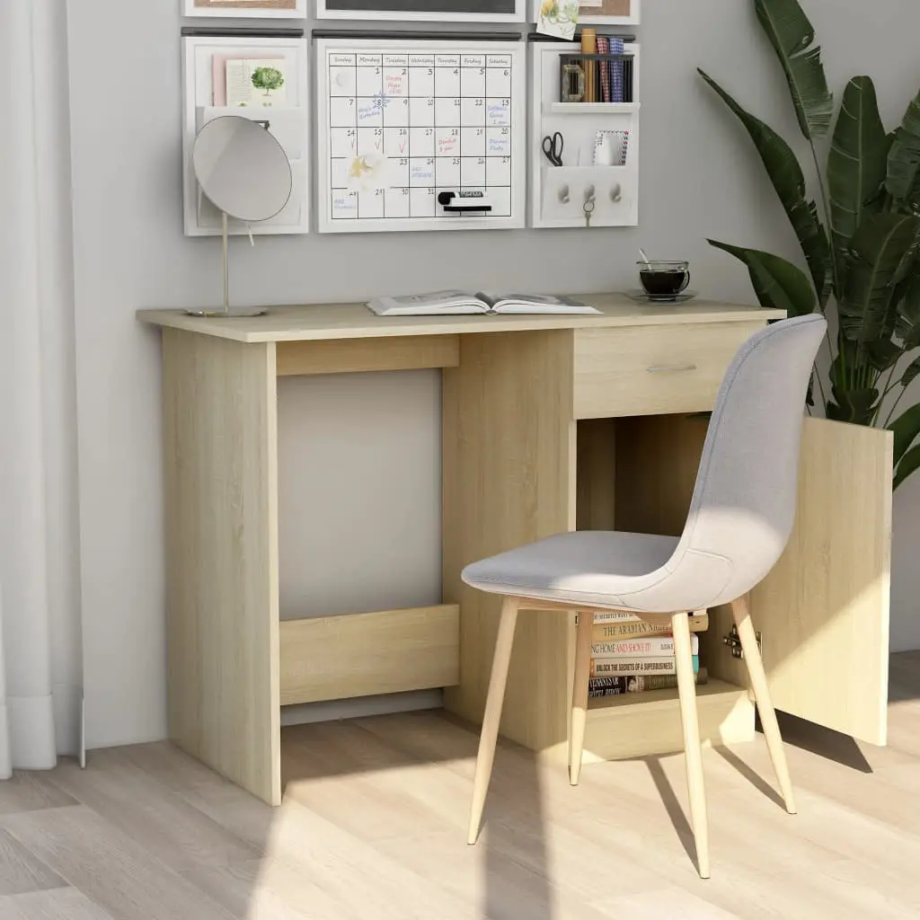 Our sleek and modern desk will be a practical addition to your study and working area! Made of quality board, this desk ensures sturdiness, durability and long service life. This writing table offers storage space with its integrated drawer and a door, therefore it is perfect for any tight office, dorm space, space-limited house! It can also be a console table in the hallway. The desk is easy to clean with a damp cloth.