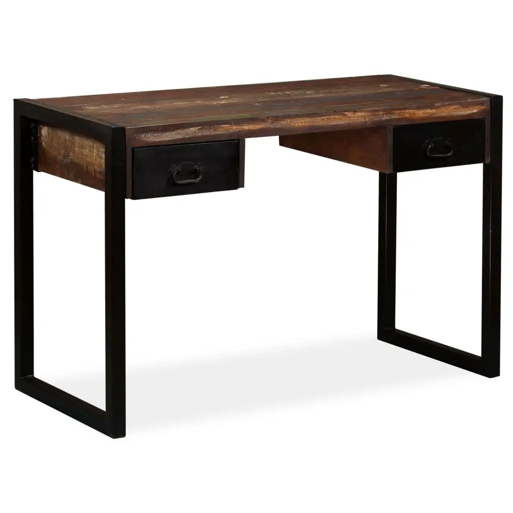 This industrial-style wooden desk exudes a vintage charm and will make a timeless addition to your home. It has two drawers, which provide ample space for storing small items such as keys, notebook, and other knick-knacks. The office desk can also be used as a sideboard or console table. The computer table is made of solid reclaimed wood that has been sourced from joists, floors and support beams from old buildings being demolished, and can consist of different types of wood like sheesham (rosewood), pine, teak, beech, oak, cedar, mango wood, acacia, etc. This means the reclaimed wood retains the characteristics of these different types of wood. Reclaimed wood is already aged, weathered and dried, so it doesn’t shrink or bend, and doesn’t require a finish. The beautiful wood grains make every piece of furniture unique and slightly different from the next. Signs of wear and visible grain structure also give each worktable its own history and a unique look. Every step of the process is carried out with the greatest care, be it sanding, painting or lacquering. Assembly is easy. Important note: Colours vary from piece to piece, making each of our study tables unique; the delivery is random.