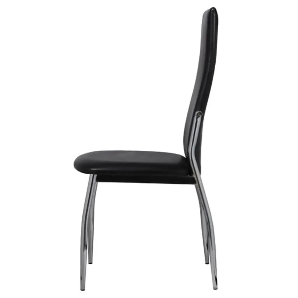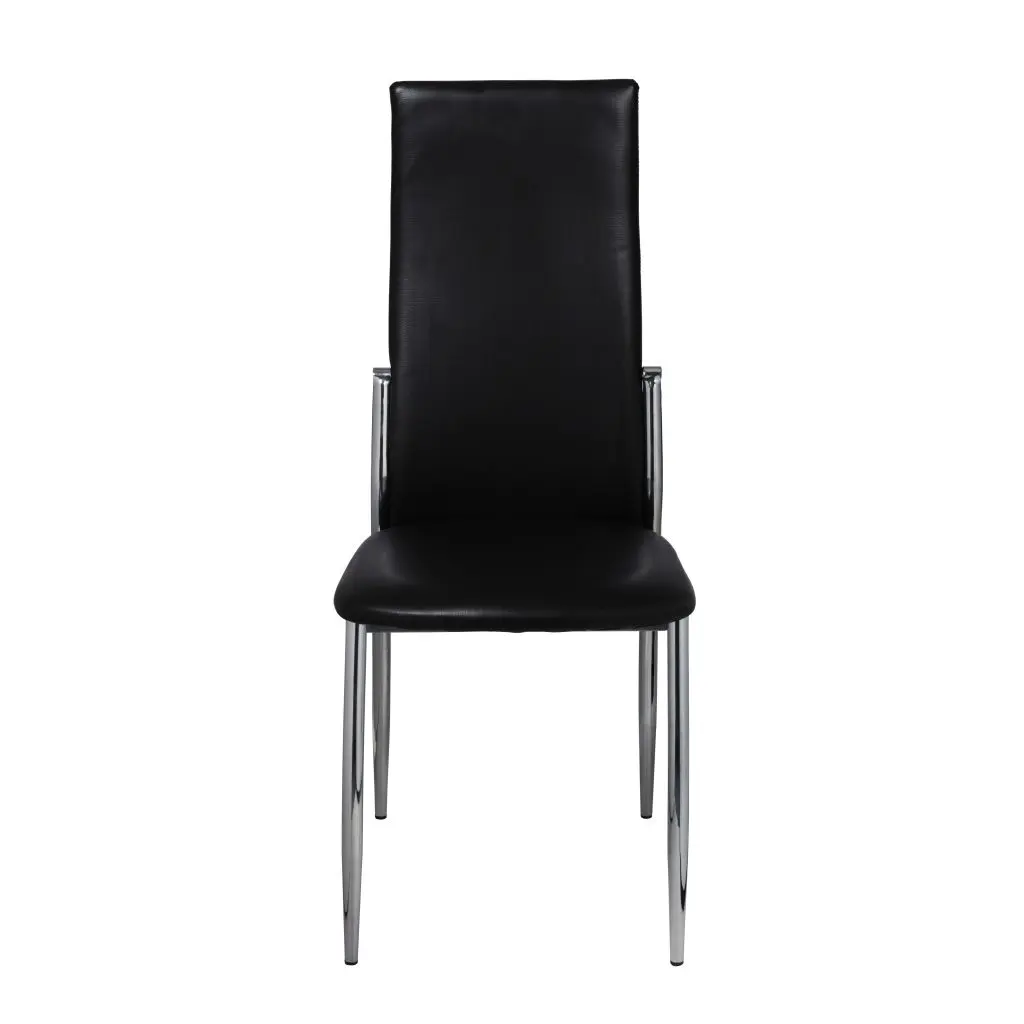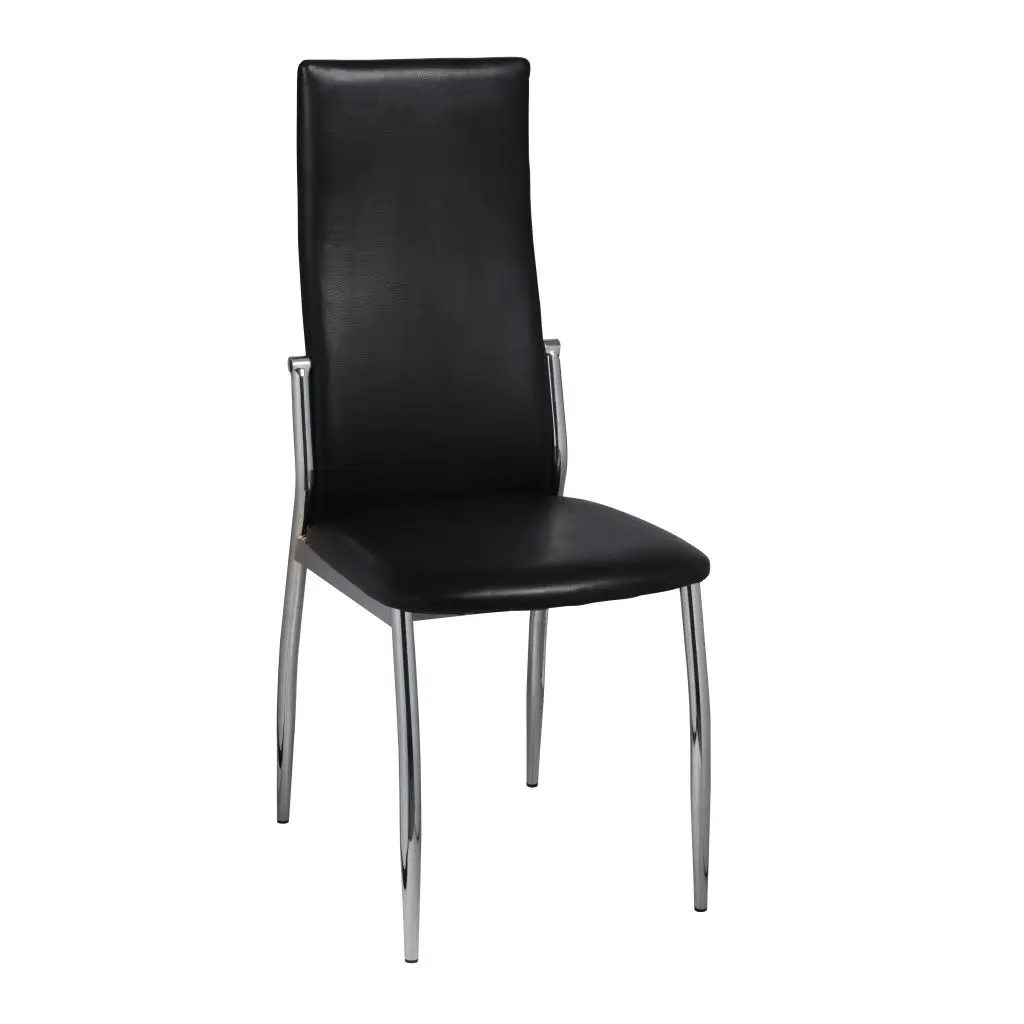 These 2 modern dining chairs have an ergonomic design to increase comfort. These comfortable dining chairs have a high quality and robust construction. The feet are made of stable chrome and the seating is made of durable synthetic leather which can easily be cleaned.