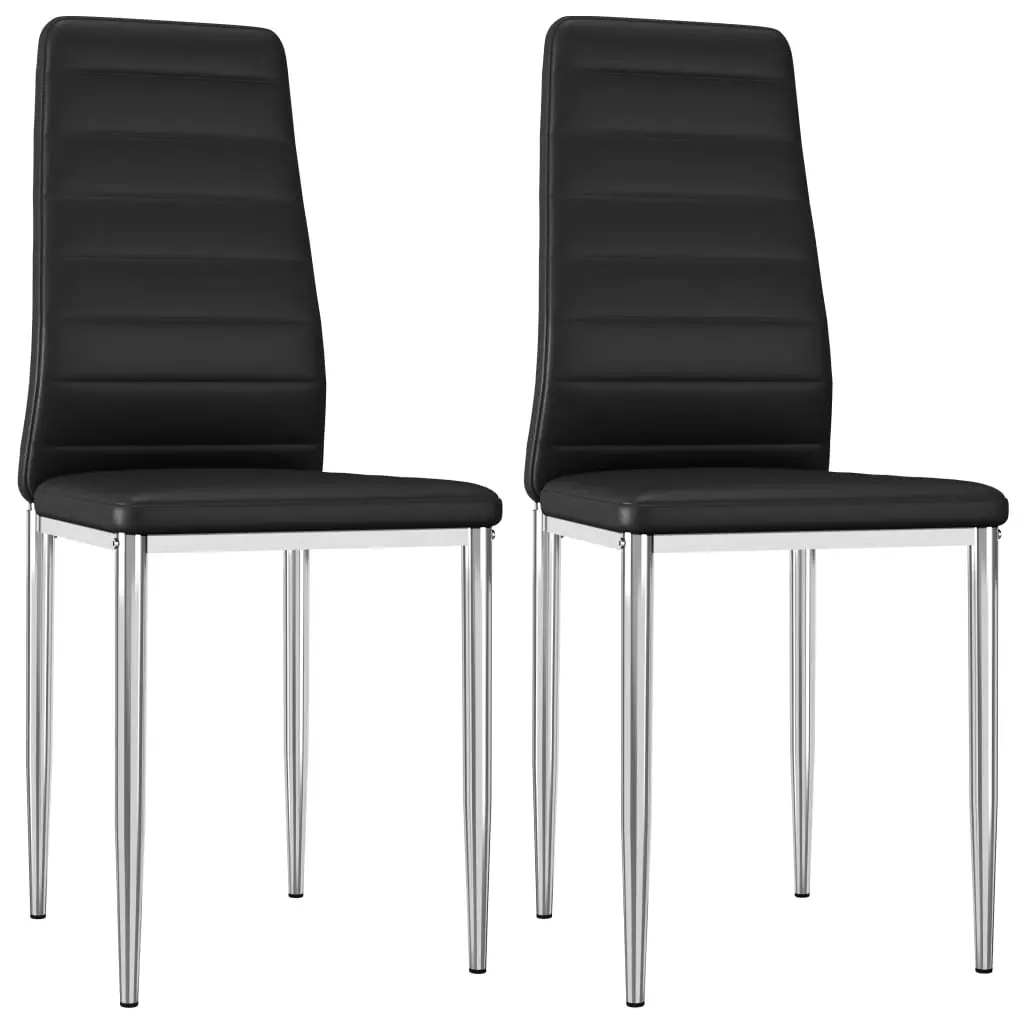 This set of 2 dining chairs, with a clean, contemporary design, will perfectly fit in any interior. The chairs have a sturdy metal chrome frame and are upholstered in a high-quality faux leather that is soft and durable. Thanks to the thickly-padded seats and backrests, as well as the ergonomic design, these dining chairs are highly comfortable. The chairs are easy to assemble. Delivery includes 2 dining chairs.