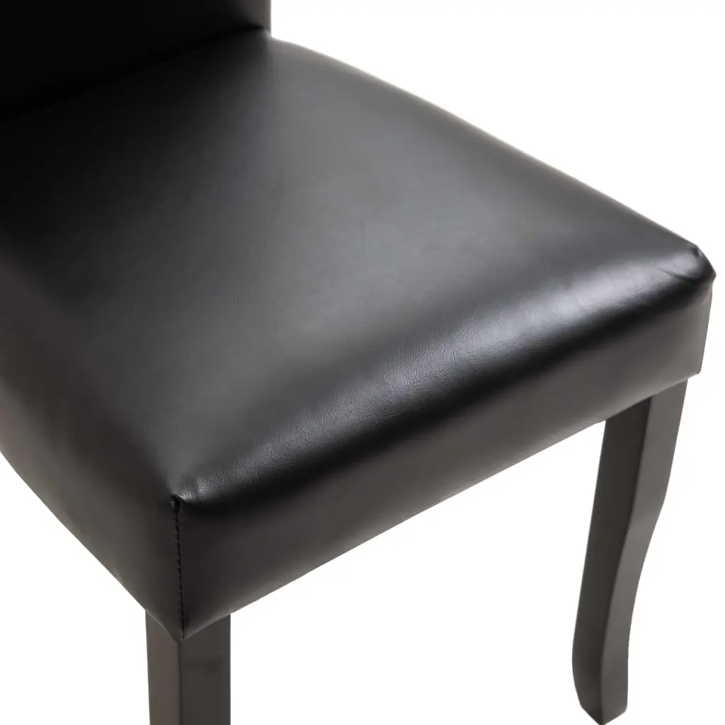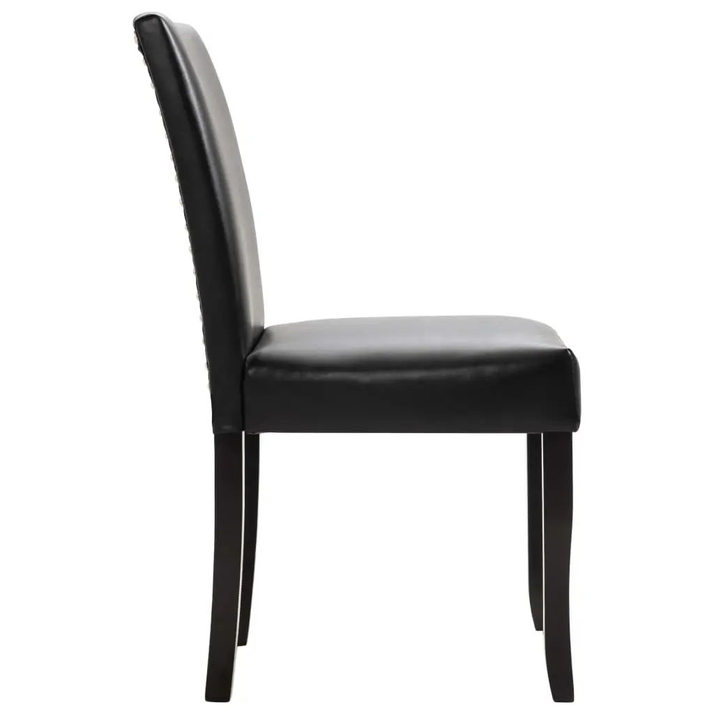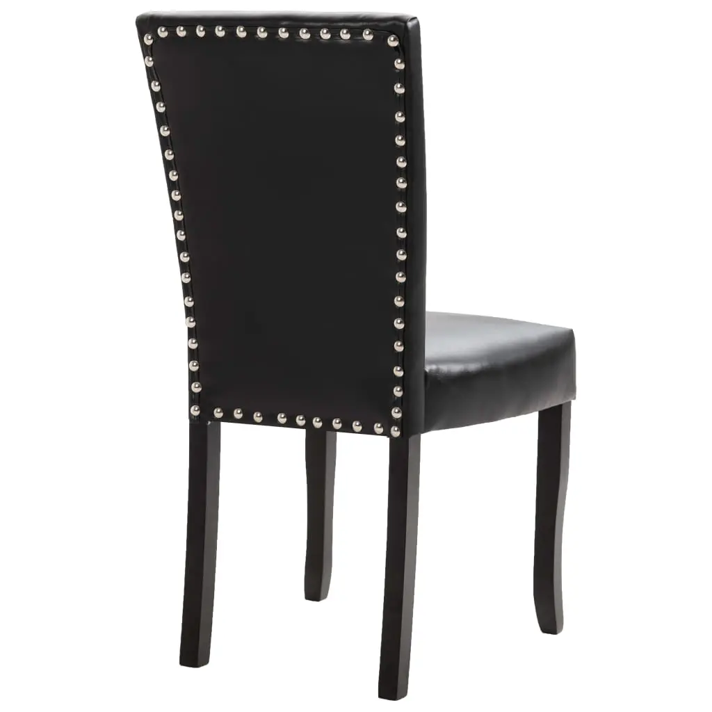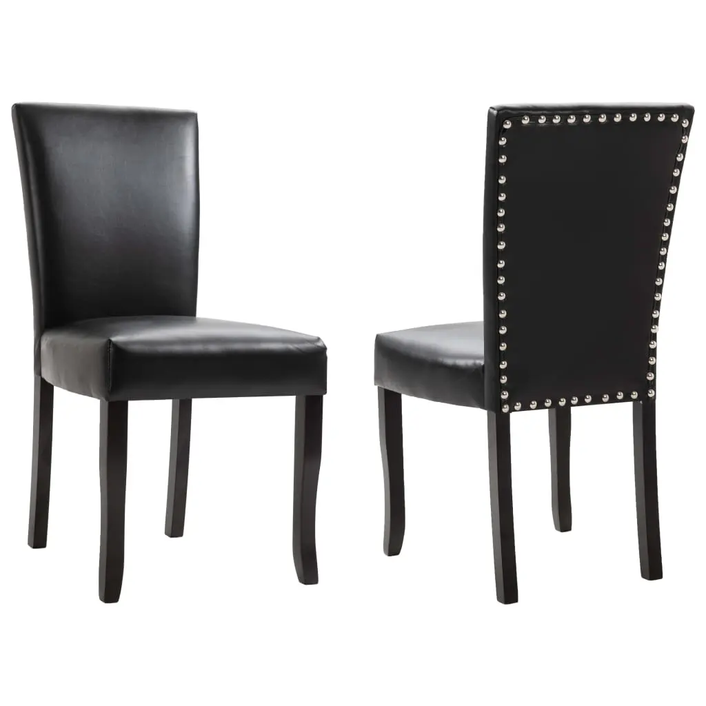 This dining chair set in a modern design will be a truly eye-catcher in any room. The dining chairs are upholstered in a soft faux leather and thickly padded to provide maximum comfort. Its ergonomic design makes the dining chair exceedingly comfortable to nestle. The backrest, decorated with unique nails, adds a fabulous charm to the chair. Thanks to the solid wooden legs, the chairs are sturdy and stable. Delivery includes 2 dining chairs.