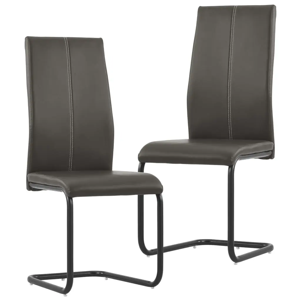 Add a modern touch to your dining room or living room with our cosy and stable cantilever dining chairs! The dining room chairs are upholstered in faux leather to provide comfort. This set of 2 dining chairs is aesthetically and ergonomically designed to make a cosy highlight in your home. It provides a comfortable place for your family to have dinner in the dining room or read and rest in the living room. Thanks to the soft seat and backrest, our chair set will surely bring you optimal seating comfort. Additionally, the powder-coated metal legs add to the chairs’ stability and sturdiness. Delivery includes 2 dining chairs.