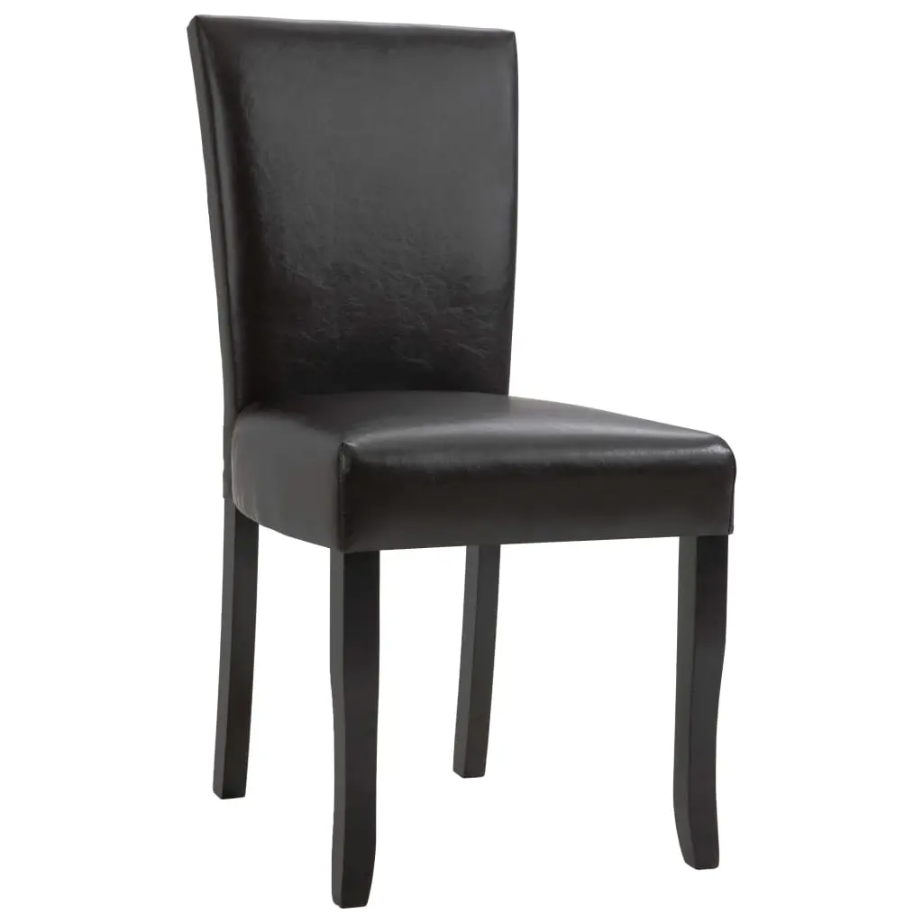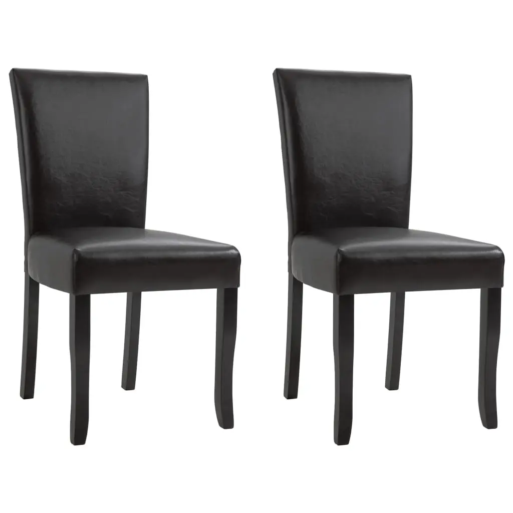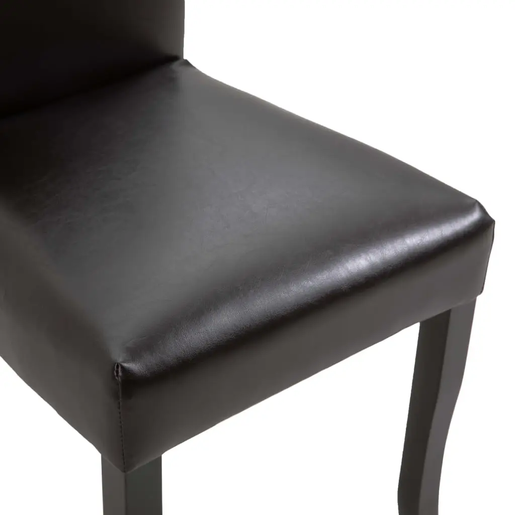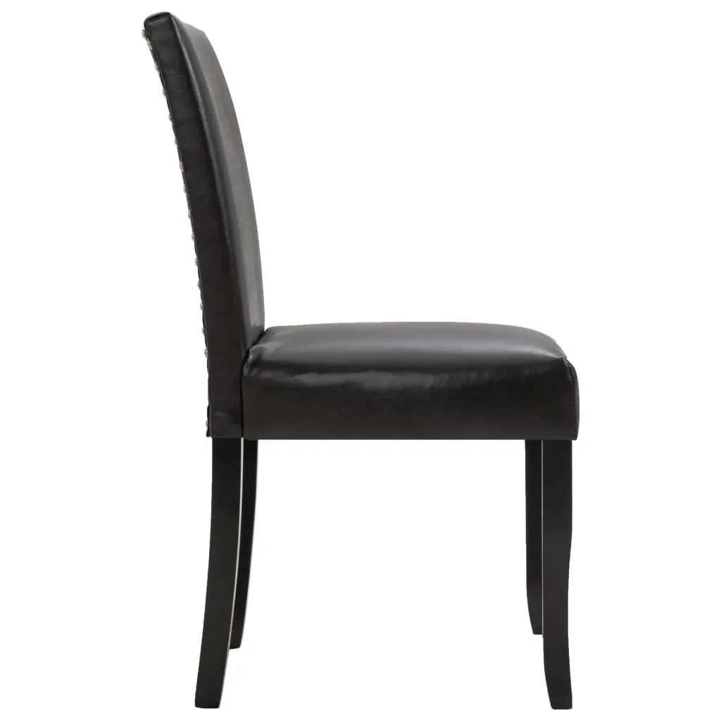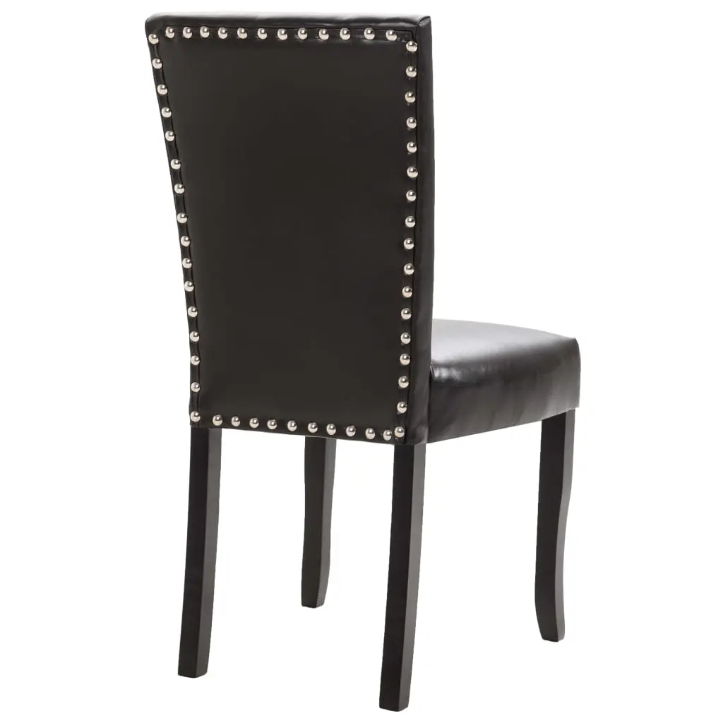 This dining chair set in a modern design will be a truly eye-catcher in any room. The dining chairs are upholstered in a soft faux leather and thickly padded to provide maximum comfort. Its ergonomic design makes the dining chair exceedingly comfortable to nestle. The backrest, decorated with unique nails, adds a fabulous charm to the chair. Thanks to the solid wooden legs, the chairs are sturdy and stable. Delivery includes 2 dining chairs.