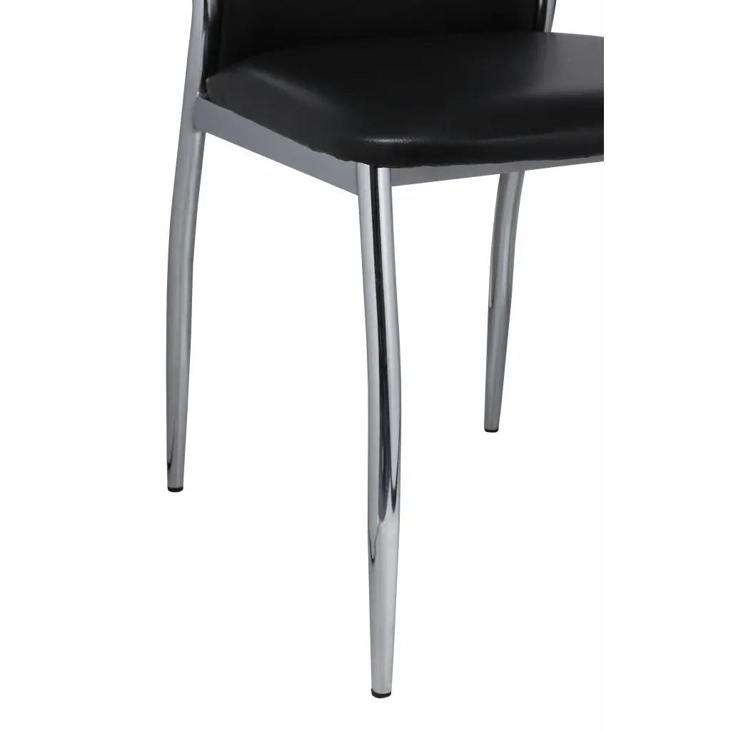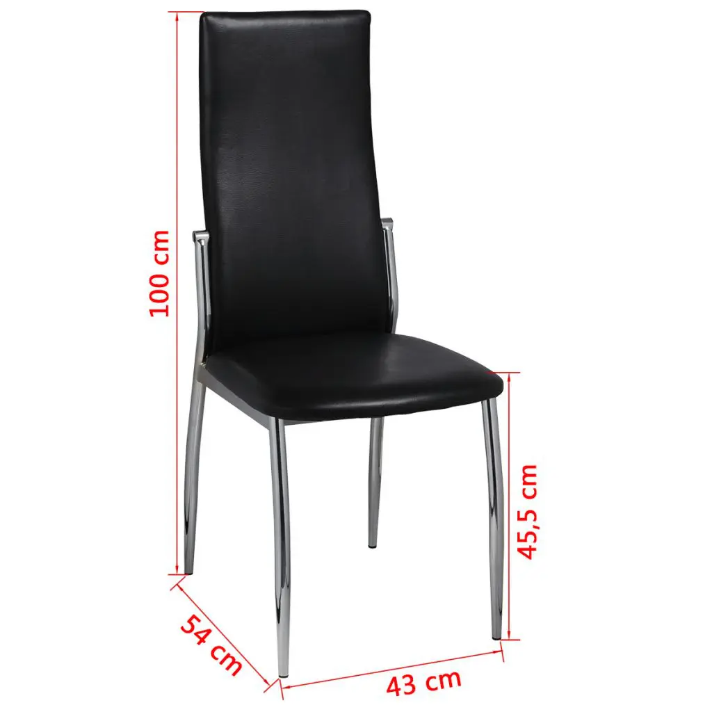 These 4 modern dining chairs have an ergonomic design to increase comfort. These comfortable dining chairs have a high quality and robust construction. The feet are made of stable chrome and the seating is made of durable synthetic leather which can easily be cleaned.