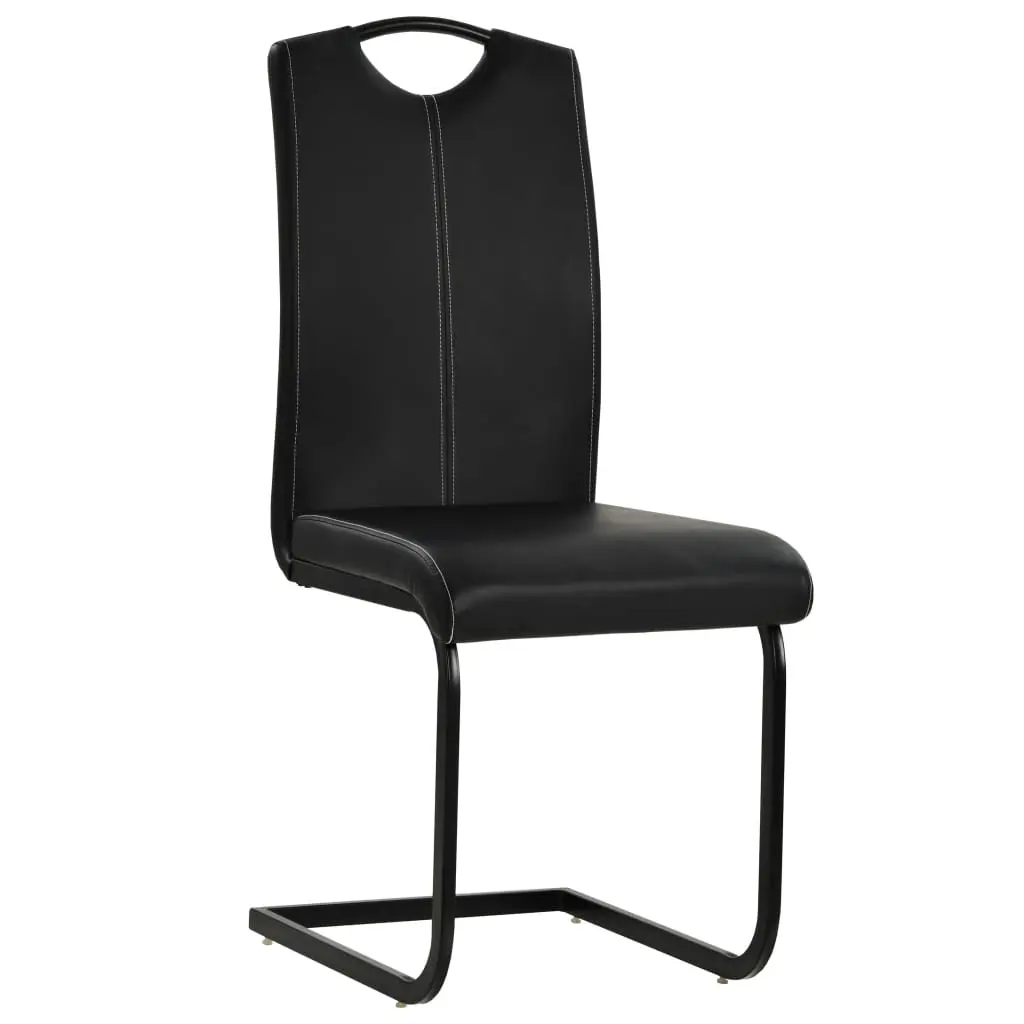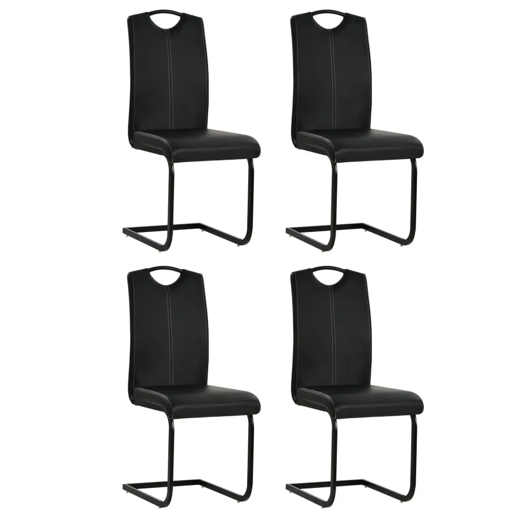 Our cantilever dining chair set has a sleek, streamlined look and will suit any modern kitchen or dining room decor. Upholstered in foam-padded faux leather, the chairs are comfortable and will give your interior a luxurious look and feel. The sturdy steel frames make the chairs stable and durable. The chair set is easy to assemble. Delivery includes 4 dining chairs.