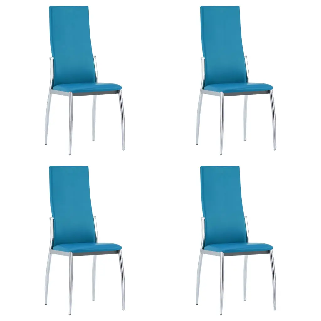 This dining chair set features a stylish and modern design, which will be perfect for your home, restaurant, or office. The dining chairs are upholstered in a soft faux leather and thickly padded to provide maximum comfort. Its ergonomic design makes the dining chair exceedingly comfortable to nestle. Additionally, thanks to the chromed metal legs, the chairs are considerably sturdy and stable. Delivery includes 4 dining chairs.