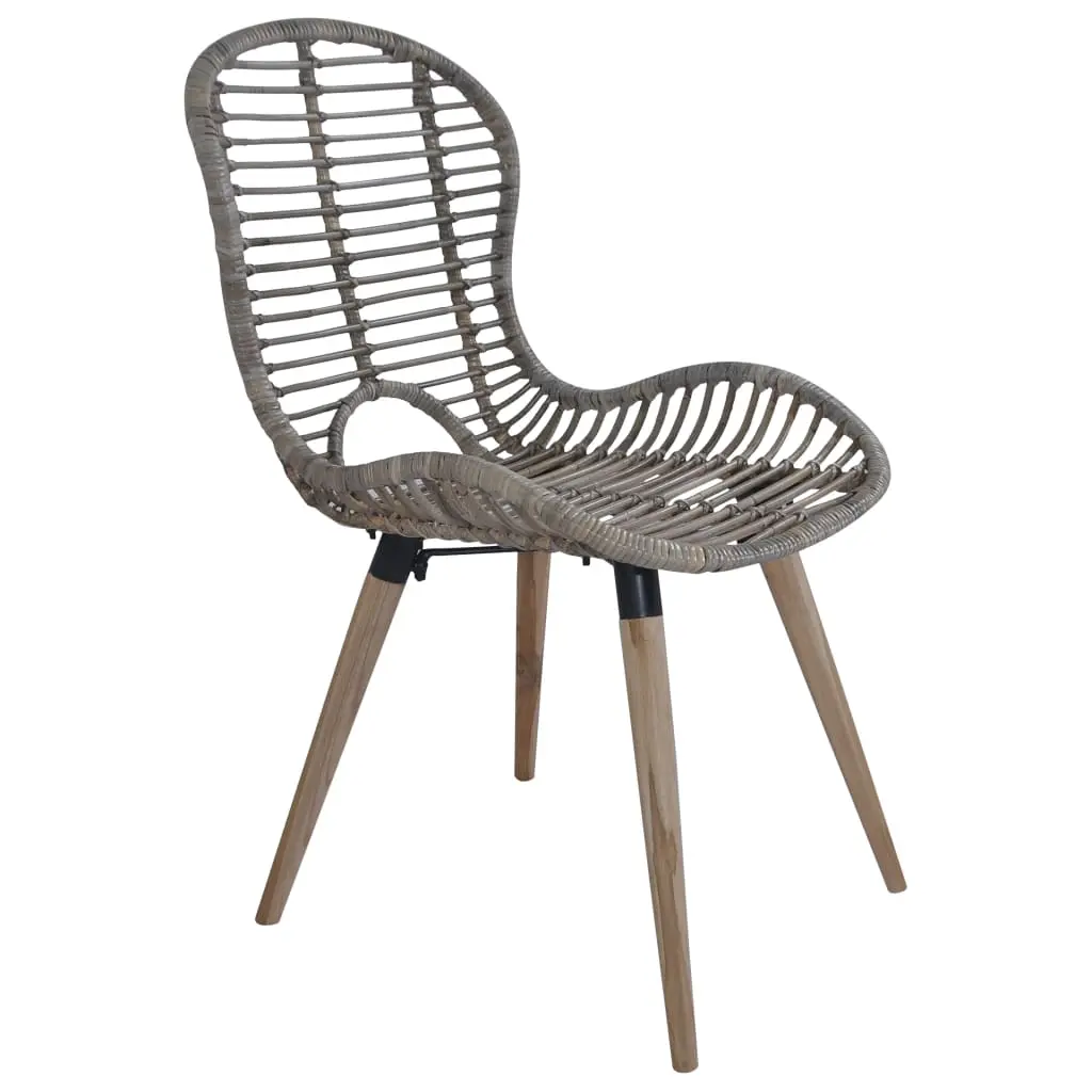 Our unique natural rattan chairs are a perfect combination of style and functionality. They will become the eye-catcher in your kitchen or living room! Thanks to the natural rattan seating and backrest areas, the chairs are water resistant and easy to clean. The wooden legs ensure this set of furniture stable and durable and give their vintage style. These chairs will suit any decor and are easy to assemble. Delivery includes 4 dining chairs.