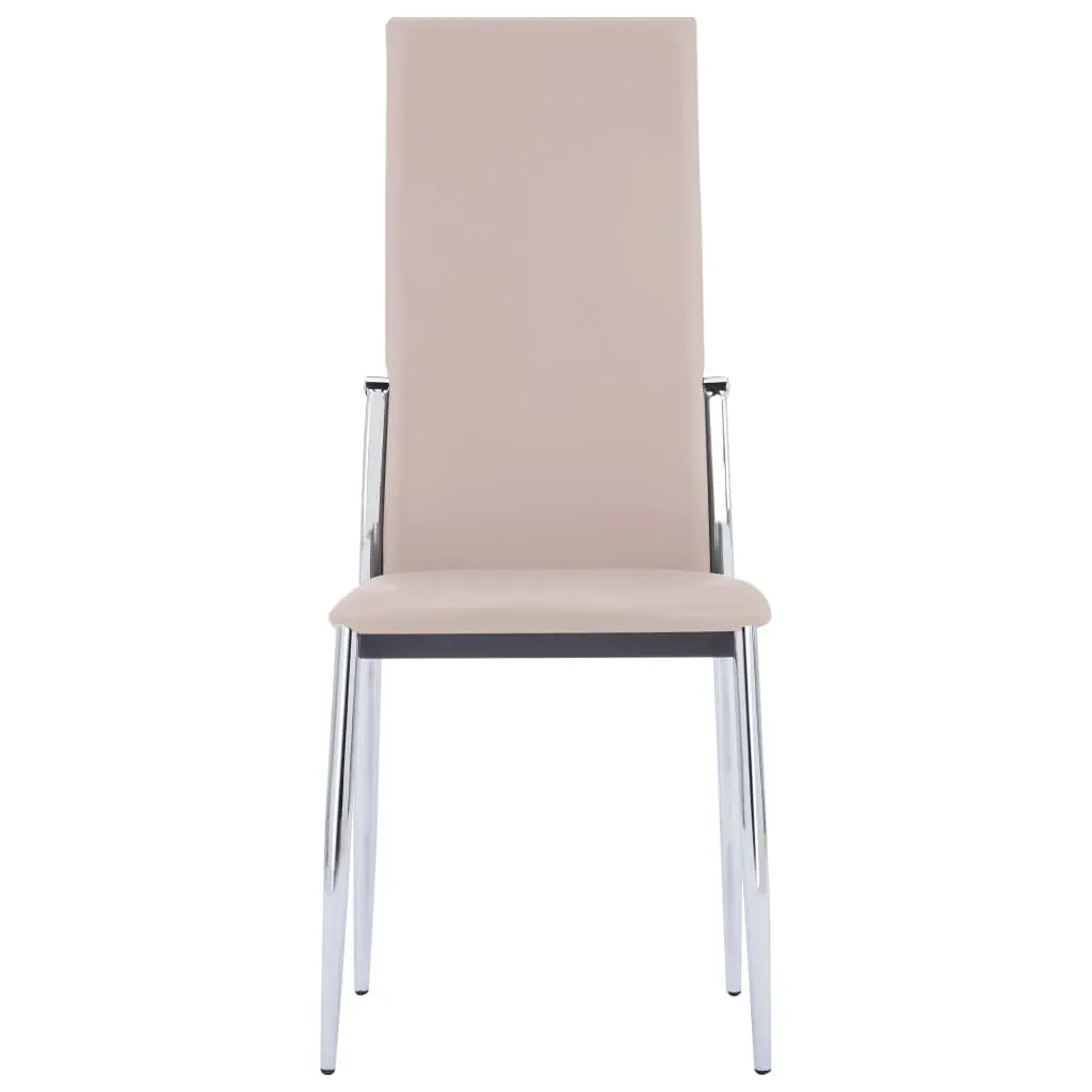 This dining chair set features a stylish and modern design, which will be perfect for your home, restaurant, or office. The dining chairs are upholstered in a soft faux leather and thickly padded to provide maximum comfort. Its ergonomic design makes the dining chair exceedingly comfortable to nestle. Additionally, thanks to the chromed metal legs, the chairs are considerably sturdy and stable. Delivery includes 4 dining chairs.