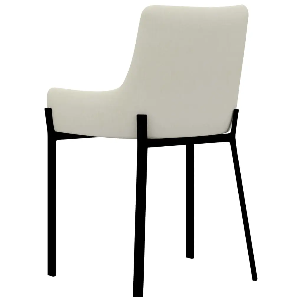 These stylish, high-quality fabric dining chairs will be a great choice for use around the house. The dining chairs are crafted from solid plywood, which makes them durable. Thanks to the quality steel used, the chairs have sturdy and stable legs, and their foam padded seat makes them highly comfortable to sit on. They can also be used as stylish office chairs. These chairs will add a touch of cool, modern style to your living space! Delivery includes 4 fabric dining chairs.