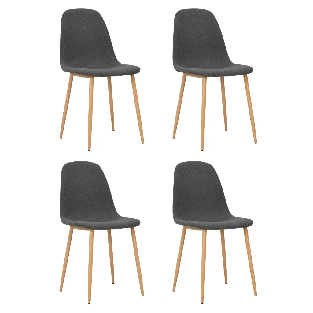 These high-quality dining chairs have a chic and elegant design and will add a modern touch to your decor. The seat and backrest are upholstered with fabric and have a foam filling inside, which is soft and comfortable. The metal legs add to the chairs’ stability and sturdiness. Their ergonomically-designed shape will give you optimal seating comfort. Our chairs are easy to assemble. Delivery includes 4 dining chairs.