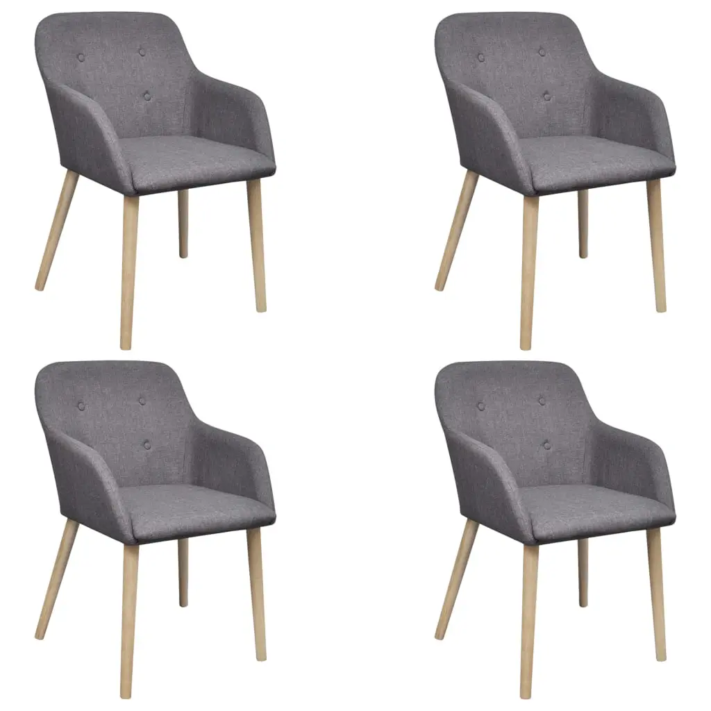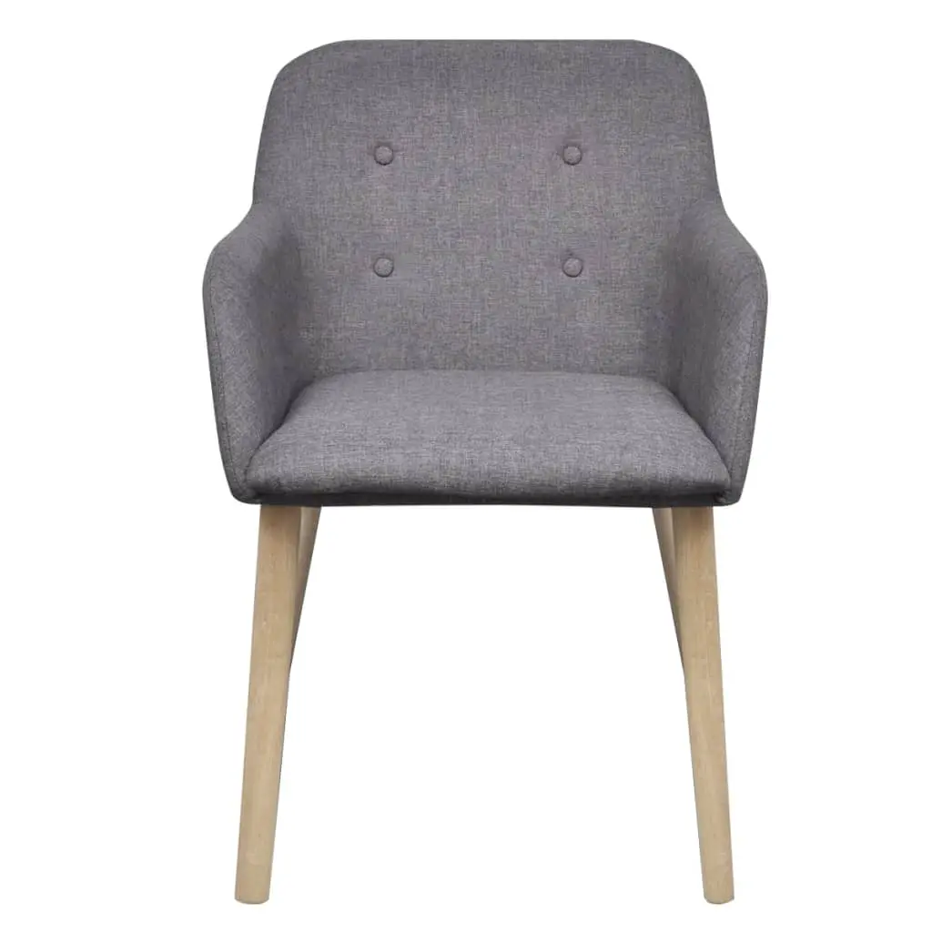 This set of 4 dining chairs with armrests, made from luxurious and high quality fabric, is aesthetically and ergonomically designed to make a cozy highlight in your home. It provides a comfortable place for your family to have dinner in the dining room or read and rest in the living room. Thanks to the thickly foam padded seat and backrest, our chair will surely bring you optimal seating comfort. The solid oak legs also bring super stability and ensure the chair excellent durability. Delivery includes 4 dining chairs.