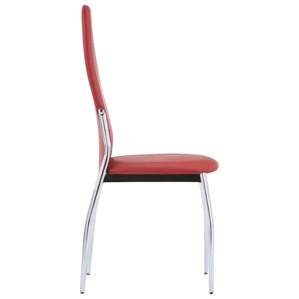 This dining chair set features a stylish and modern design, which will be perfect for your home, restaurant, or office. The dining chairs are upholstered in a soft faux leather and thickly padded to provide maximum comfort. Its ergonomic design makes the dining chair exceedingly comfortable to nestle. Additionally, thanks to the chromed metal legs, the chairs are considerably sturdy and stable. Delivery includes 4 dining chairs.