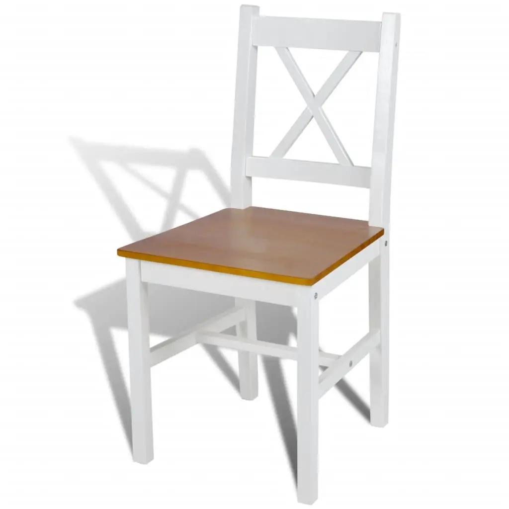 This wooden dining chair set, with a simple yet elegant design, consists of 4 pieces and will make a great addition to your dining room or kitchen.The chairs are made of solid pine wood, which makes them very stable and durable. The dining chair is also easy to clean thanks to its smooth paint finish. It is ergonomically designed for added comfort.Delivery includes 4 dining chairs.