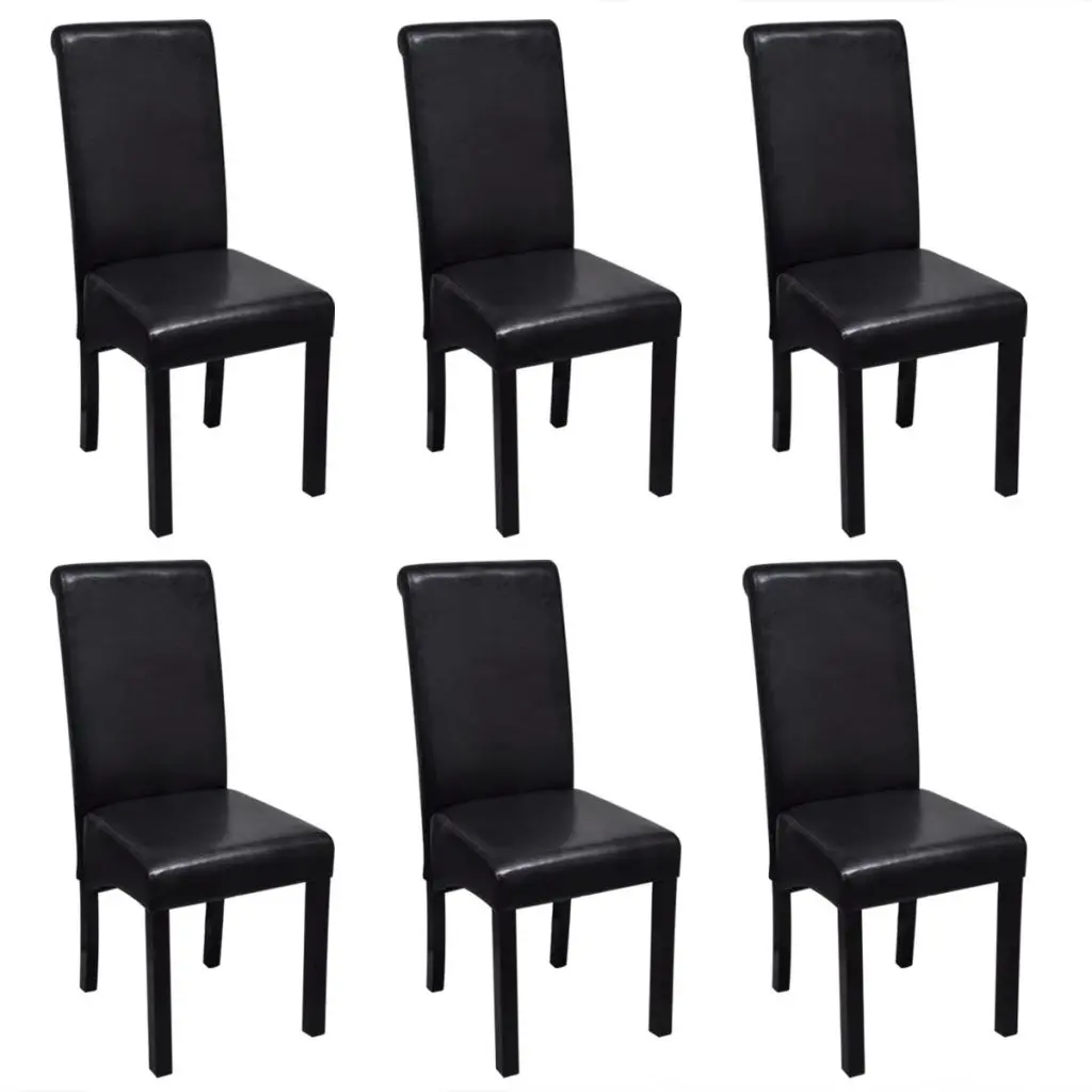 - Delivery includes 6 black artificial leather dining chairs