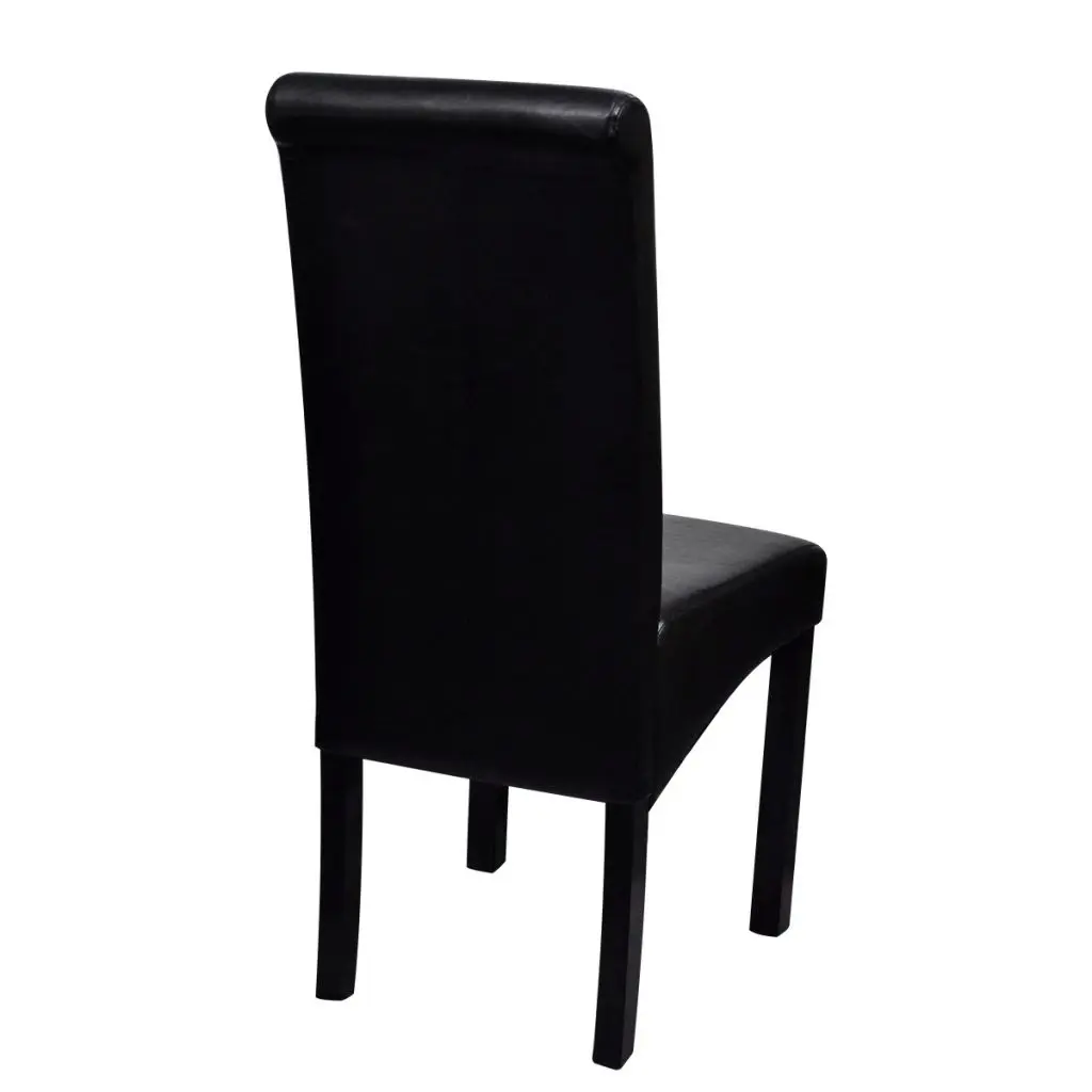 These stylish, high-quality artificial leather dining chairs will be a great choice for use around the house. The dining chairs are crafted from several high-quality materials, which makes them durable and water resistant, so spills and stains are no longer an issue. Thanks to the quality wood used, the chairs have sturdy and stable legs, and their foam padded seat makes them highly comfortable to sit on. These dining chairs will add a touch of cool, modern style to your living space! They can also be used as stylish office chairs. Delivery includes 6 black artificial leather dining chairs.