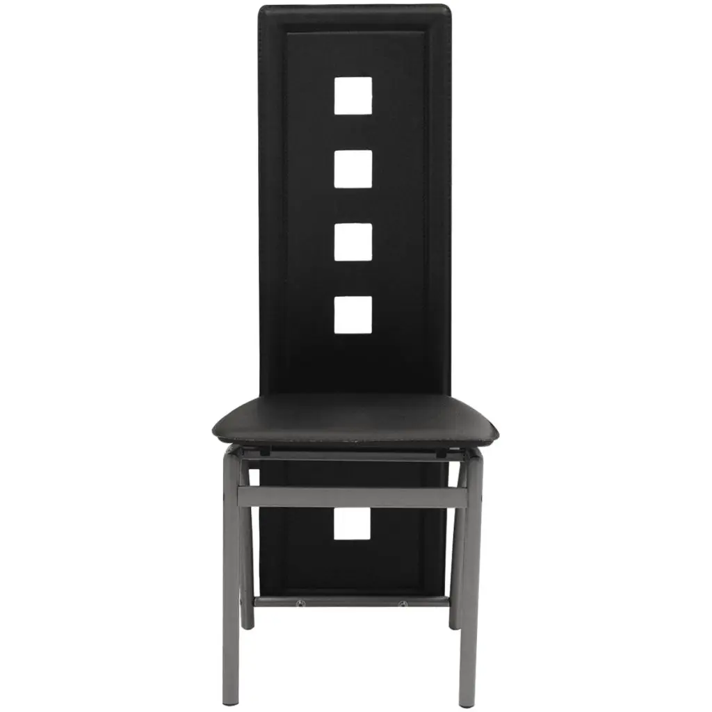 The stunning chairs are contemporary yet timeless, adding a touch of style to your interior. Thanks to the ergonomic design, they are highly comfortable with high backrest and their solid steel frames make them very stable and durable. The seating is made of durable synthetic leather which can easily be cleaned. Assembly is very easy. Delivery includes 6 dining chairs.