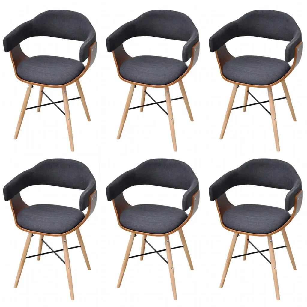 This set, consisting of 6 dining chairs with armrests, upholstered in luxurious, high-quality fabric, is aesthetically and ergonomically designed to make a decorative as well as comfortable addition to your dining room. Thanks to the thickly foam-padded seat and backrest, our chairs provide the utmost seating comfort. The high-quality walnut frame and beech legs make the chairs sturdy and durable, and add to their stylish look. Delivery includes 6 dining chairs.