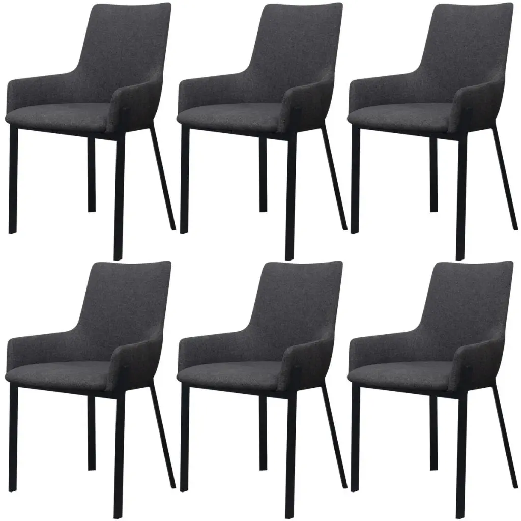 These stylish, high-quality fabric dining chairs will be a great choice for use around the house. The dining chairs are crafted from high-quality plywood, which makes them durable. Thanks to the quality steel used, the chairs have sturdy and stable legs, and their foam padded seat makes them highly comfortable to sit on. They can also be used as stylish office chairs. These chairs will add a touch of cool, modern style to your living space! Delivery includes 6 fabric dining chairs.