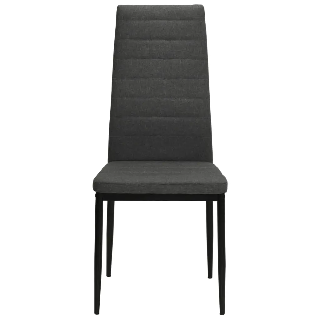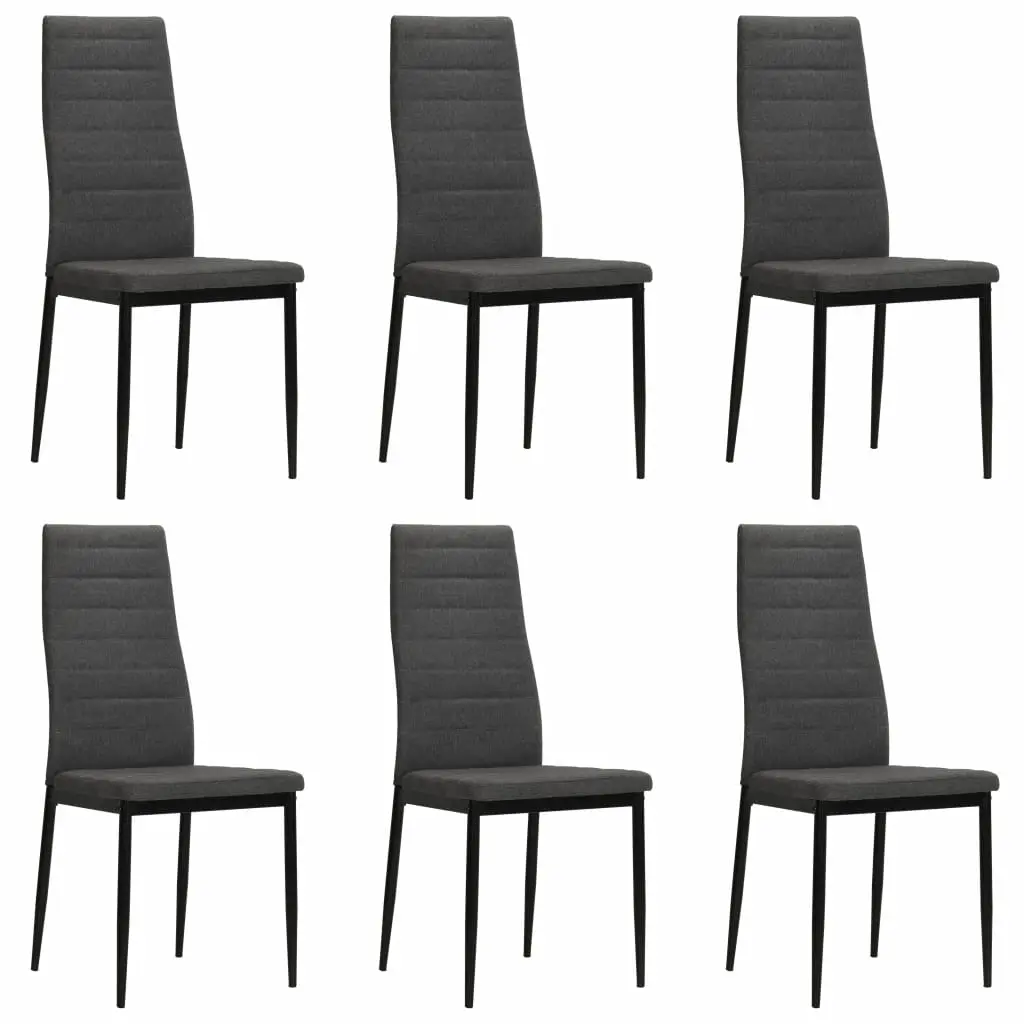 This set of 6 dining chairs, with a clean, contemporary design, will perfectly fit in any interior. The chairs have a sturdy steel frame and are upholstered in a high-quality polyester fabric that is soft and durable. Thanks to the thickly-padded seats and backrests, as well as the ergonomic design, these dining chairs are highly comfortable. The chairs are easy to assemble. Delivery includes 6 dining chairs.