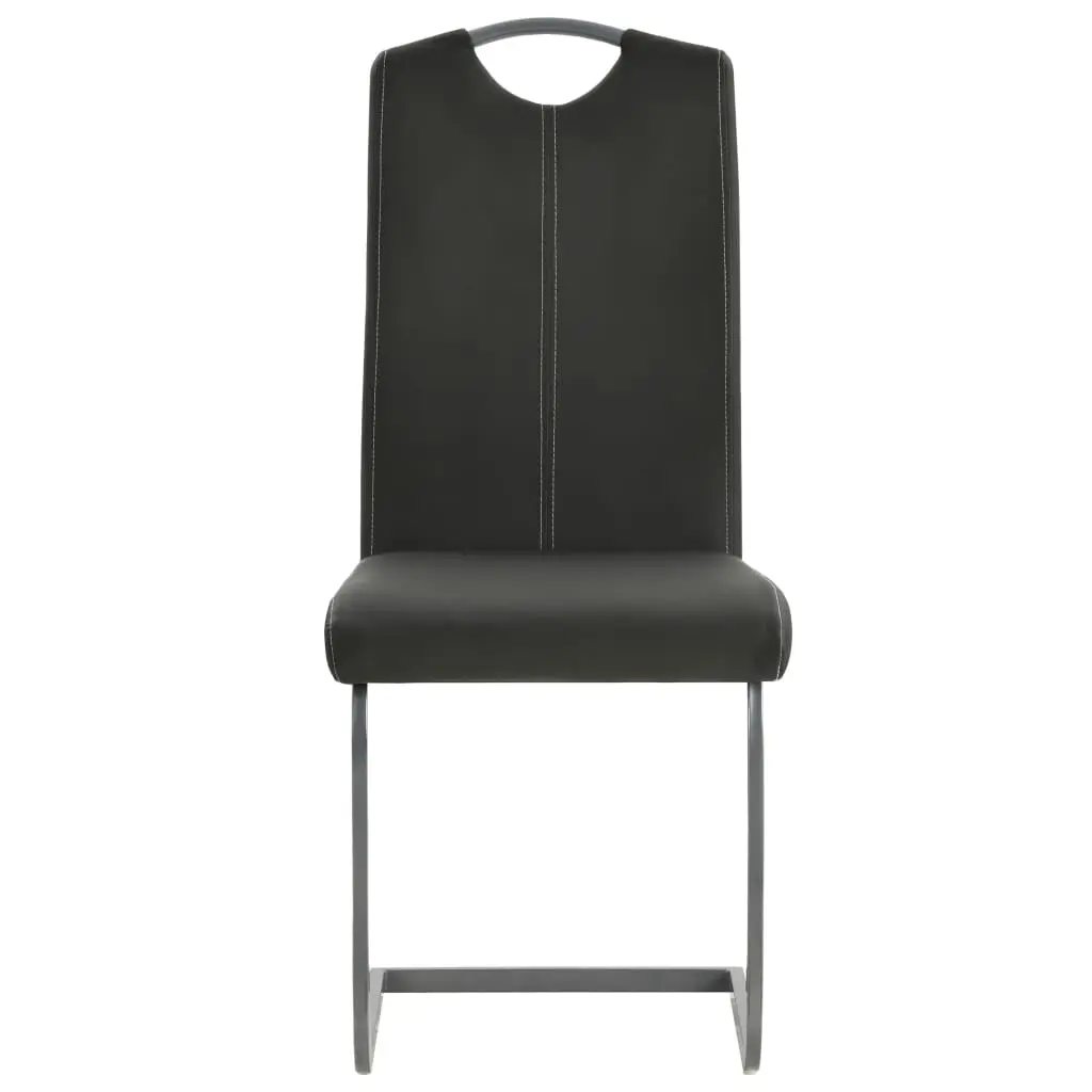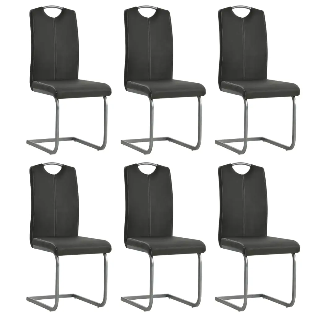 Our cantilever dining chair set has a sleek, streamlined look and will suit any modern kitchen or dining room decor. Upholstered in foam-padded faux leather, the chairs are comfortable and will give your interior a luxurious look and feel. The sturdy steel frames make the chairs stable and durable. The chair set is easy to assemble. Delivery includes 6 dining chairs.
