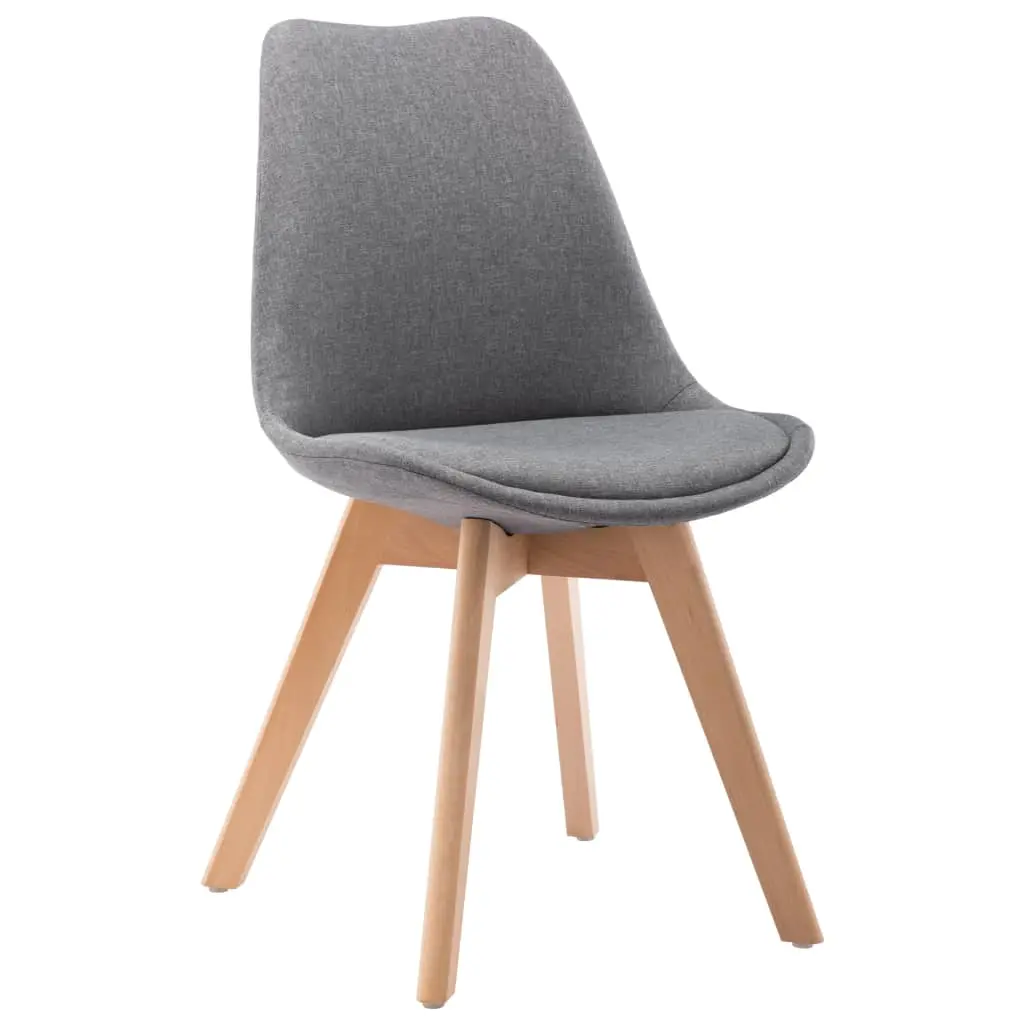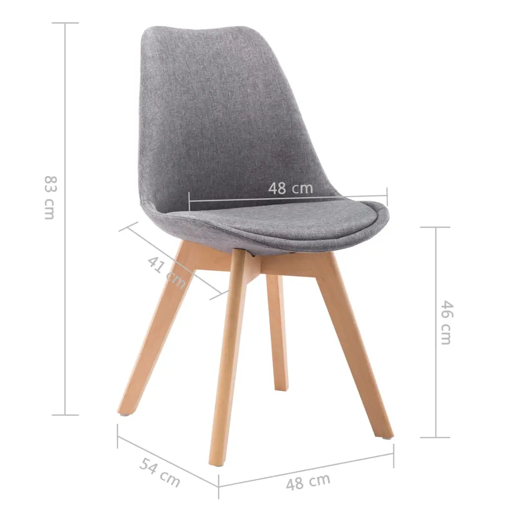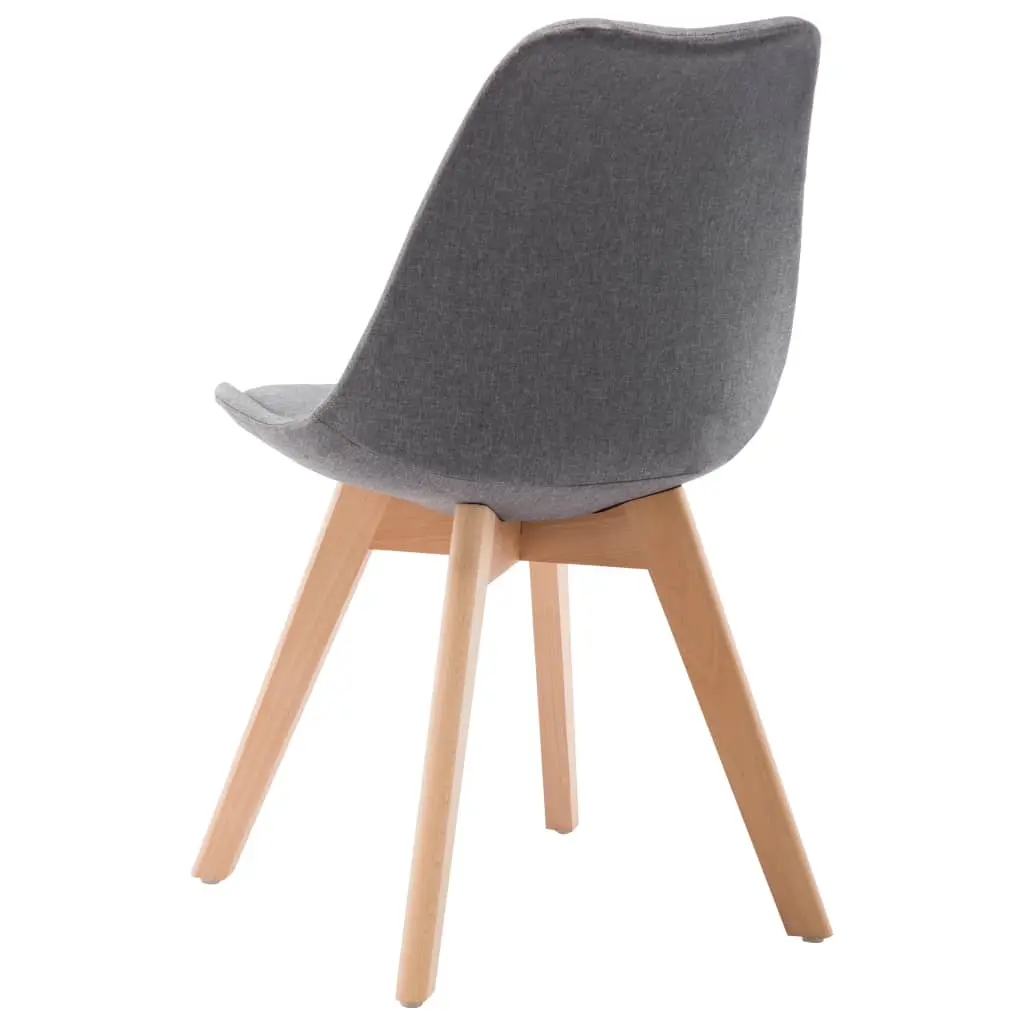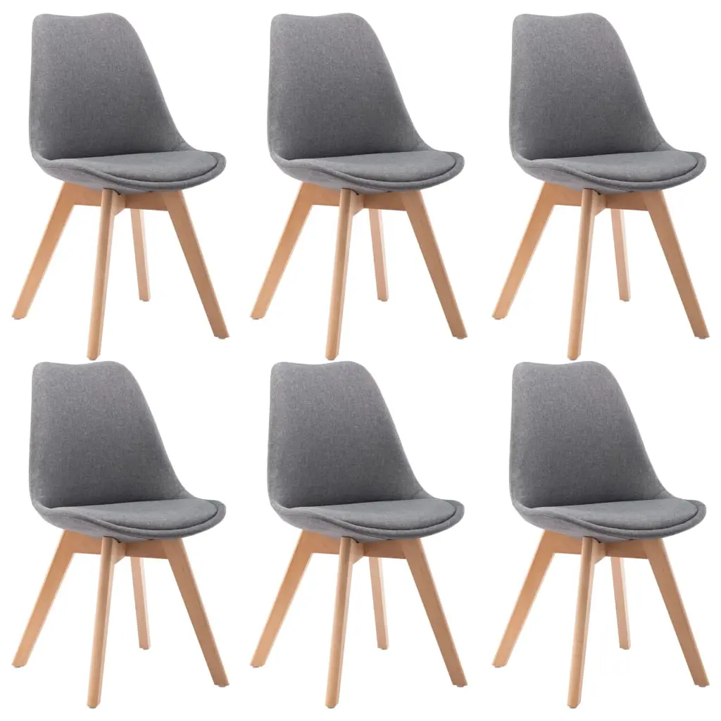 These fabric dining chairs have a timeless appearance thanks to their retro styling. They can also be used as stylish office chairs. The dining chairs have strong wooden legs. Upholstered in high-quality fabric, the seat is padded for added comfort. Add a touch of cool retro style to your living space with this set of dining chairs! Delivery includes 6 dining chairs. The chairs are easy to assemble.