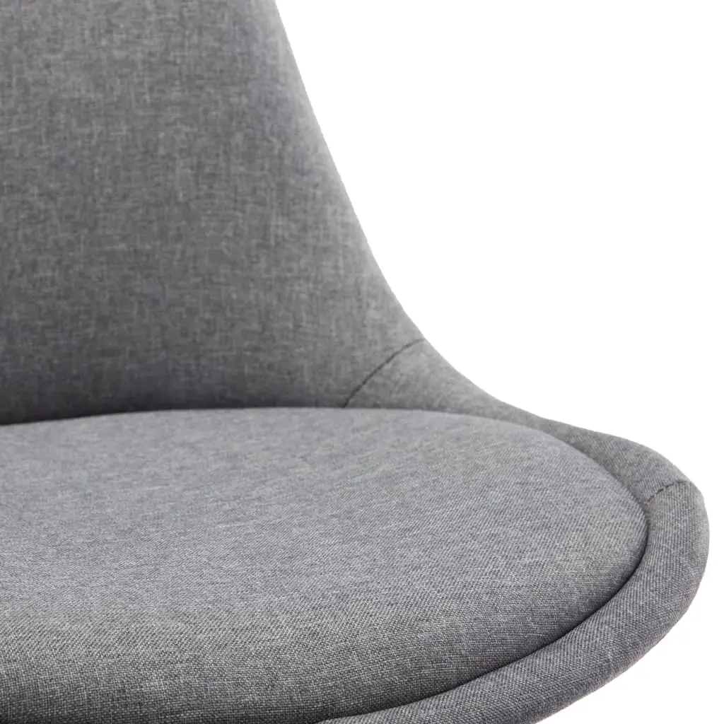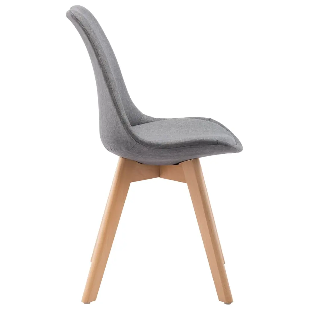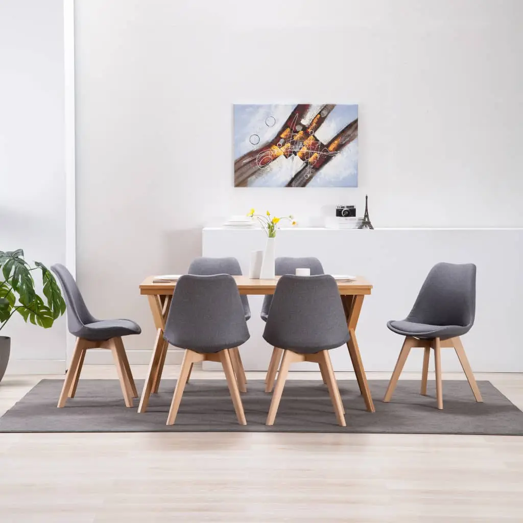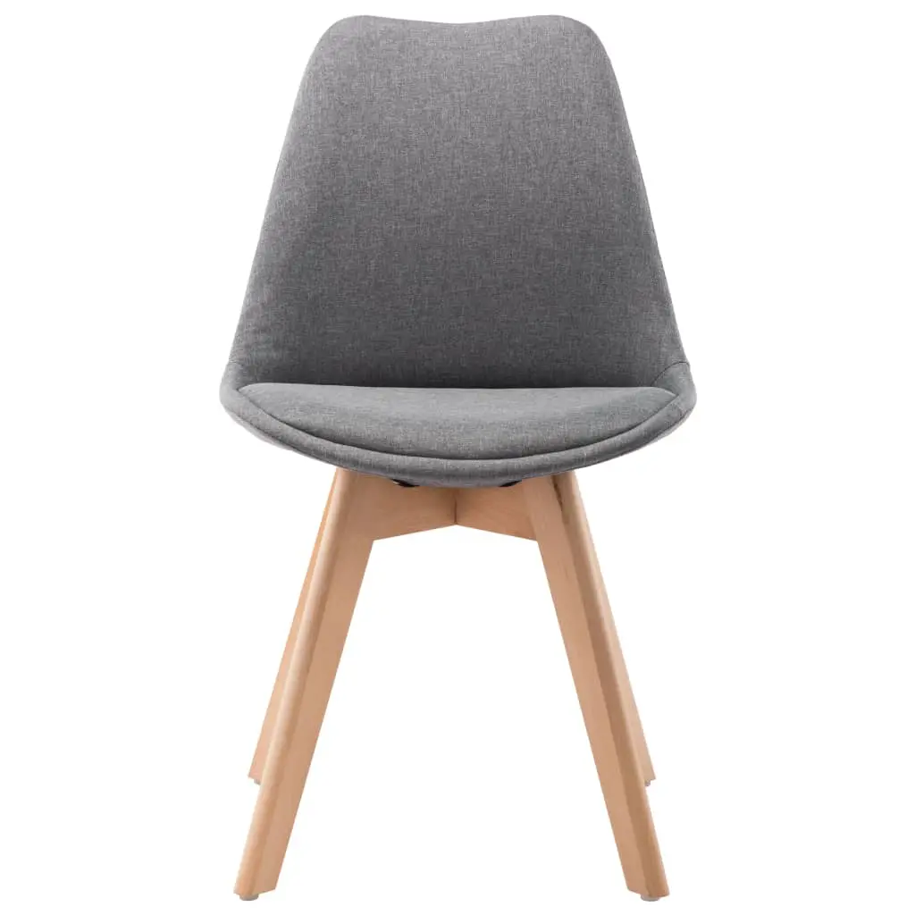 These fabric dining chairs have a timeless appearance thanks to their retro styling. They can also be used as stylish office chairs. The dining chairs have strong wooden legs. Upholstered in high-quality fabric, the seat is padded for added comfort. Add a touch of cool retro style to your living space with this set of dining chairs! Delivery includes 6 dining chairs. The chairs are easy to assemble.