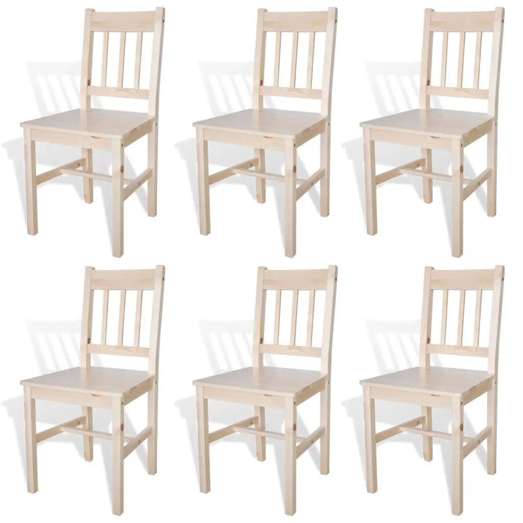 This wooden dining chair set, with a simple yet elegant design, consists of 6 pieces and will make a great addition to your dining room or kitchen.The chairs are made of solid pine wood, which makes them very stable and durable. The dining chairs are also easy to clean thanks to their smooth paint finish. They are ergonomically designed for added comfort.Delivery includes 6 dining chairs.