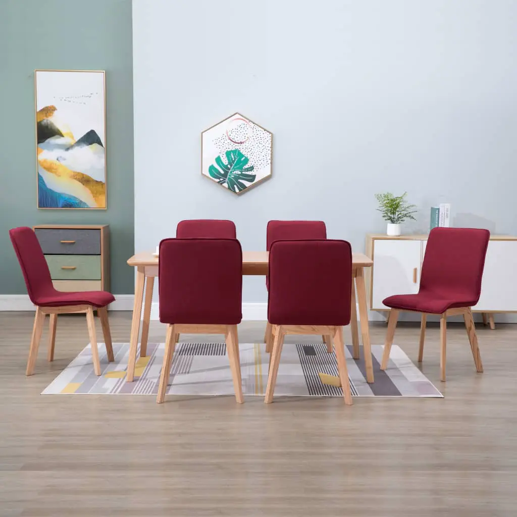 This set of 6 dining chairs, made from quality fabric, is aesthetically and ergonomically designed to make a cosy highlight in your home. It provides a comfortable place for your family to have dinner in the dining room or read and rest in the living room. Thanks to the thickly foam padded seat and backrest, our chairs will surely bring you optimal seating comfort. The solid wooden frame also bring super stability and ensure the chairs excellent durability. Delivery includes 6 dining chairs.