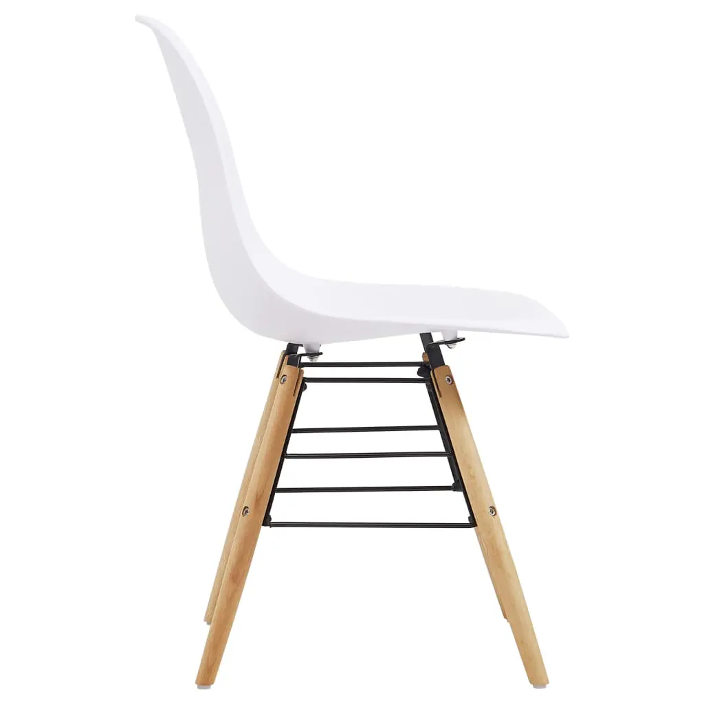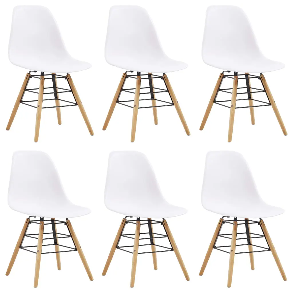 Equal parts minimalist and elegant, our dining chairs are designed to make an eye-catching statement in your dining room, kitchen, living room, etc. Made of polypropylene, the chair seats are easy to wipe clean with a damp cloth. Additionally, the beech wood legs and steel design make the chairs exceedingly stable and durable. The side chairs are easy to assemble. Delivery includes 6 dining chairs.