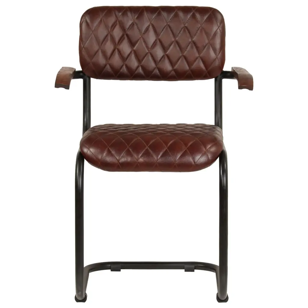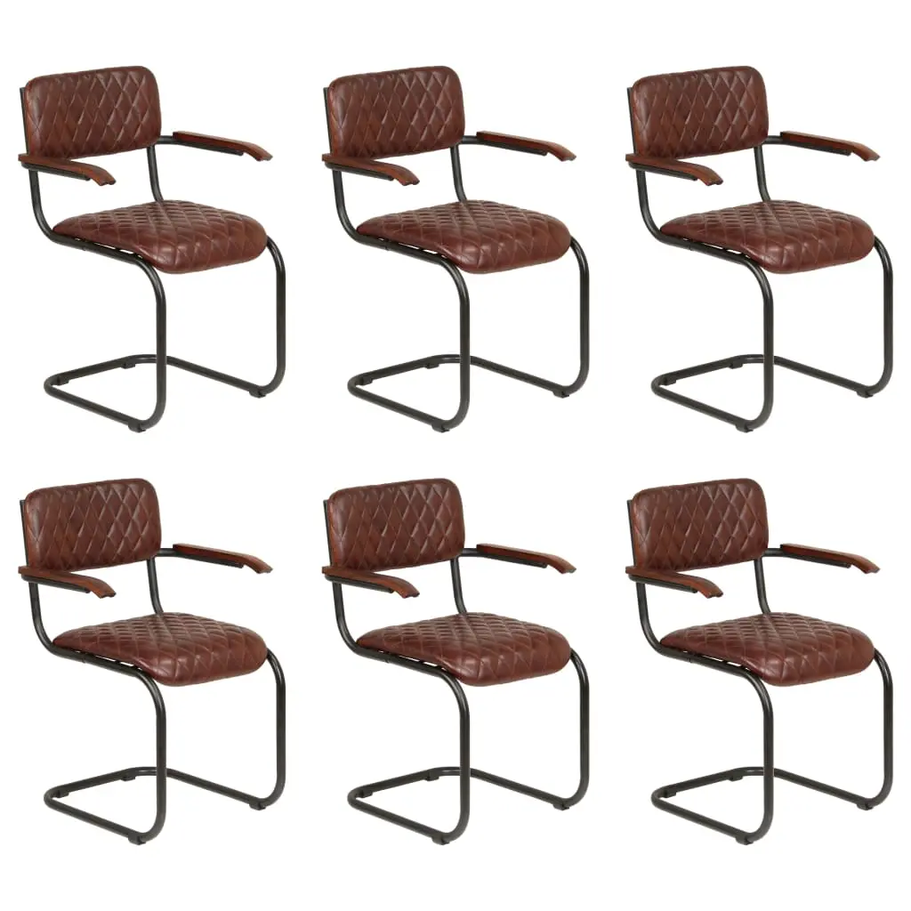The chairs will add a vintage charm to your office, kitchen, or dining room. The chairs are aesthetically and ergonomically designed with high-quality and robust construction. Thanks to the real leather upholstery, the seats and backrests are scratch resistant, highly comfortable and easy to maintain. The sturdy steel frames make the chairs stable and durable. The chair set is easy to assemble. Delivery includes 6 real leather dining chairs.