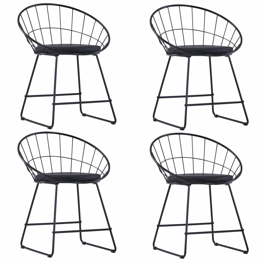 This dining chair set which consists of 4 pieces, with a simple yet elegant design, will make a great addition to your dining room or kitchen. The chairs are made of powder-coated steel, which makes them very stable, durable and easy to clean with a damp cloth. The soft faux leather cushions add extra comfort to the dinner chairs. Delivery includes 4 chairs and 4 seat cushions.