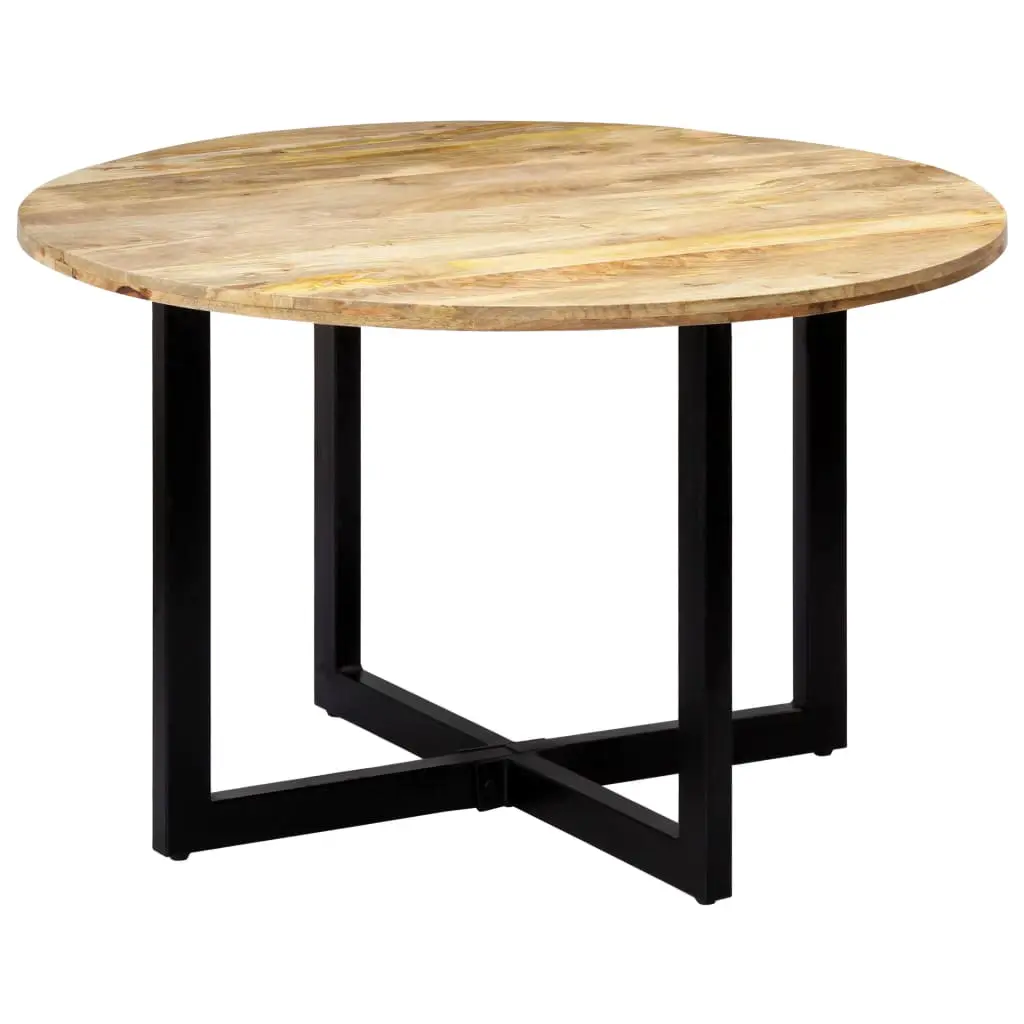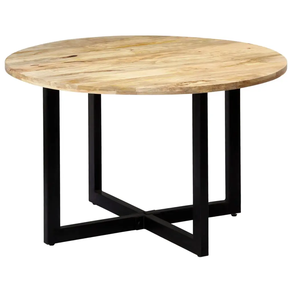 Featuring a chic design, this industrial-style wooden dining table will make a distinctive addition to your kitchen or dining room. This dinner table is made of solid mango wood, a hardwood with dense grains. Rough mango wood not only boasts the strength to bear the weight, but also stands the wear and tear of time. As a consequence, this beautifully-designed dinner table is considerably stable, durable and eye-catching. Every step of the process is carried out with the greatest care, be it polishing or lacquering. Additionally, the strong powder-coated iron legs add to the table’s sturdiness. The dining room table is easy to assemble. Important note: The grains vary from piece to piece, making each piece unique; the delivery is random.