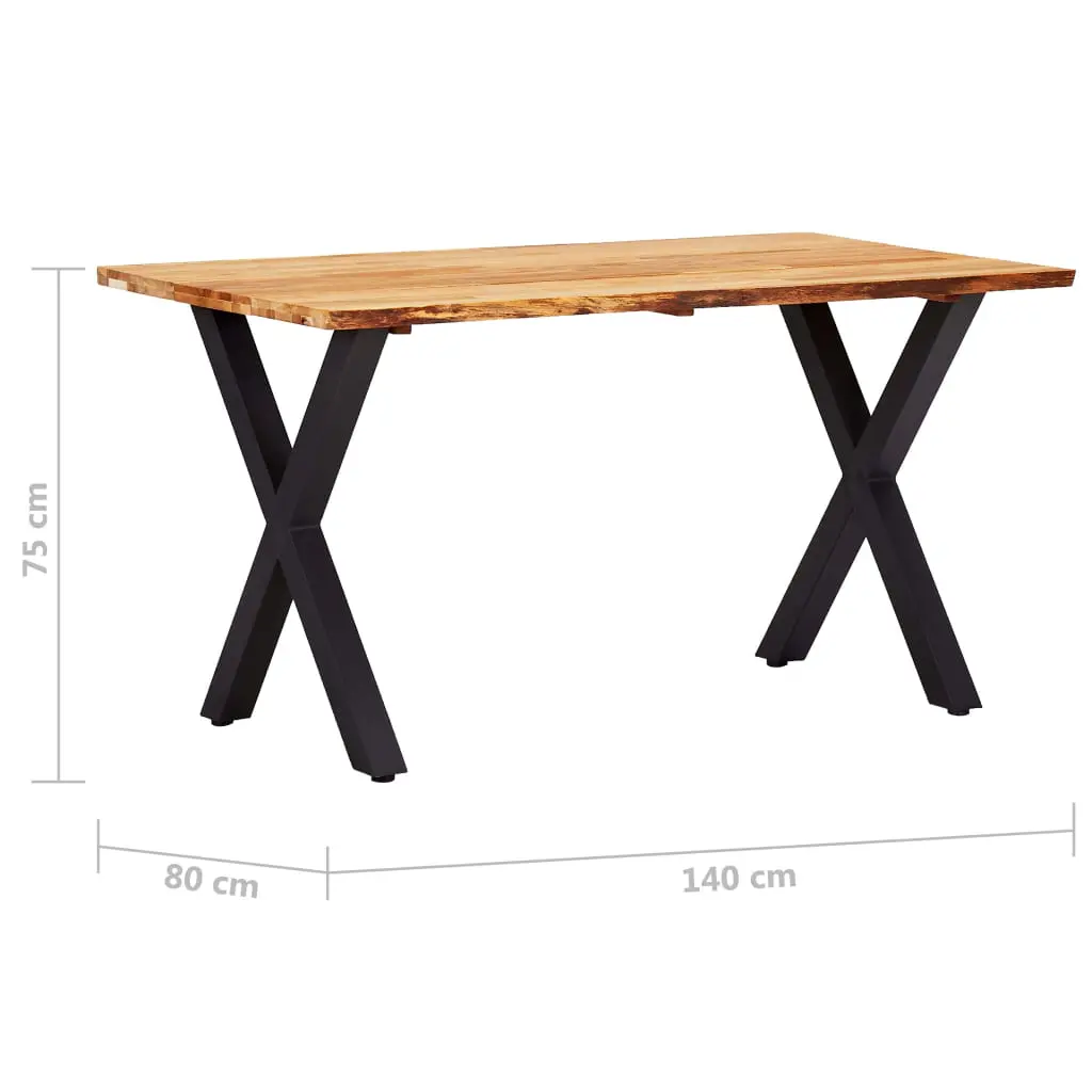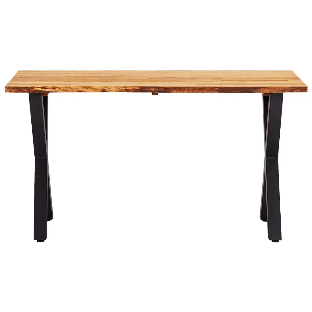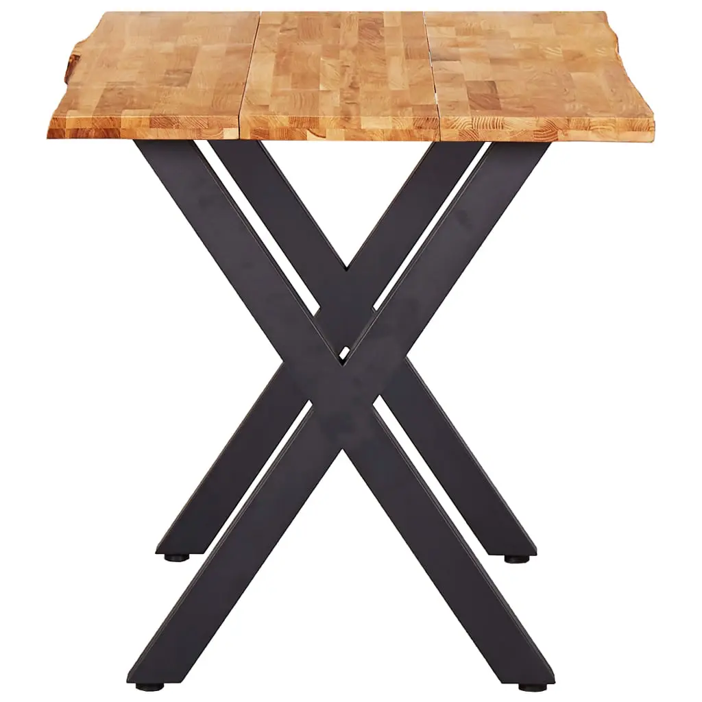 This solid wooden dining table is characterized by a cool, industrial style, which will make a great addition to your dining room or kitchen. The dining table is very sturdy and durable. The tabletop is made of solid oak wood, which is very durable. The wood’s live edge that follows the natural shape of the tree increases the beauty of the table. The unique, X-shaped, powder-coated metal legs add to the industrial style and make the table very stable. This item is easy to assemble. Please note that wood is a natural product and can show imperfections.