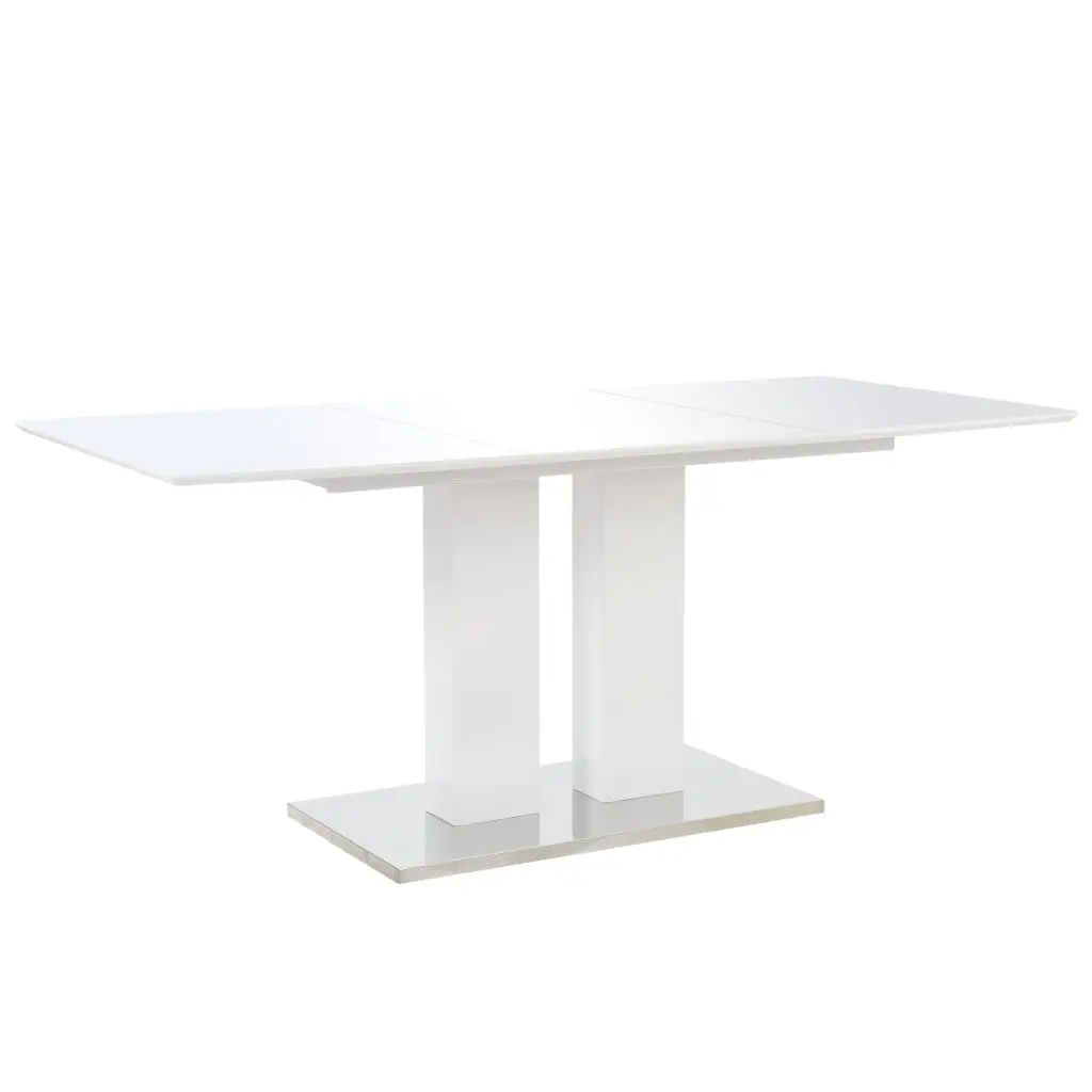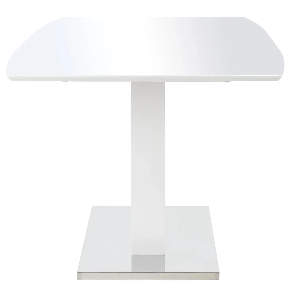 This rectangular dining table, with a clean and sleek design, will be a great choice for your dining room or kitchen. The dining table features shiny high gloss colour, which will contribute greatly to your dining experience. Made of strong MDF with solid stainless steel base, this dinner table is exceedingly stable and durable. The two support columns provide extra stability for this table. Additionally, its simple elegance will add a touch of style to all your dinners. It is also very easy to clean with just a damp cloth. The table is easy to assemble.
