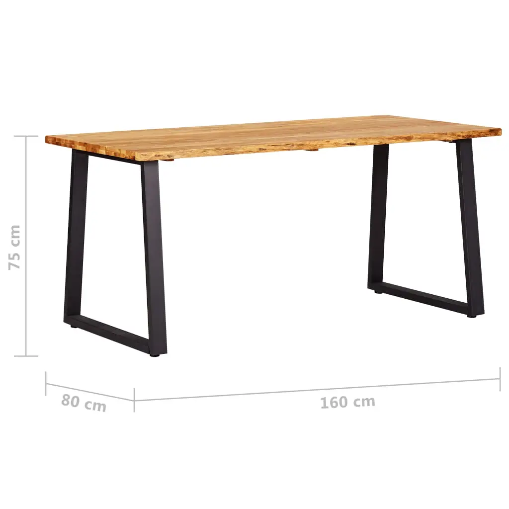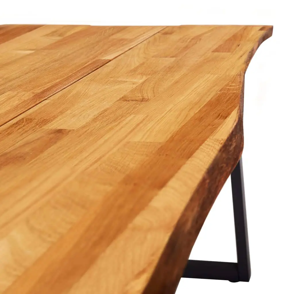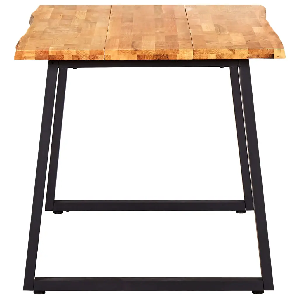 This solid wooden dining table is characterized by a cool, industrial style, which will make a great addition to your dining room or kitchen. The dining table is very sturdy and durable. The tabletop is made of solid oak wood, which is very durable. The wood’s live edge that follows the natural shape of the tree increases the beauty of the table. The unique, U-shaped, powder-coated metal legs add to the industrial style and make the table very stable. This item is easy to assemble. Please note that wood is a natural product and can show imperfections.