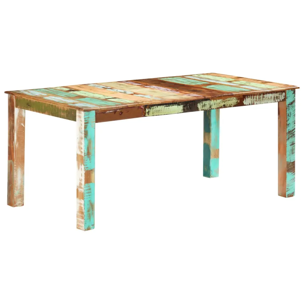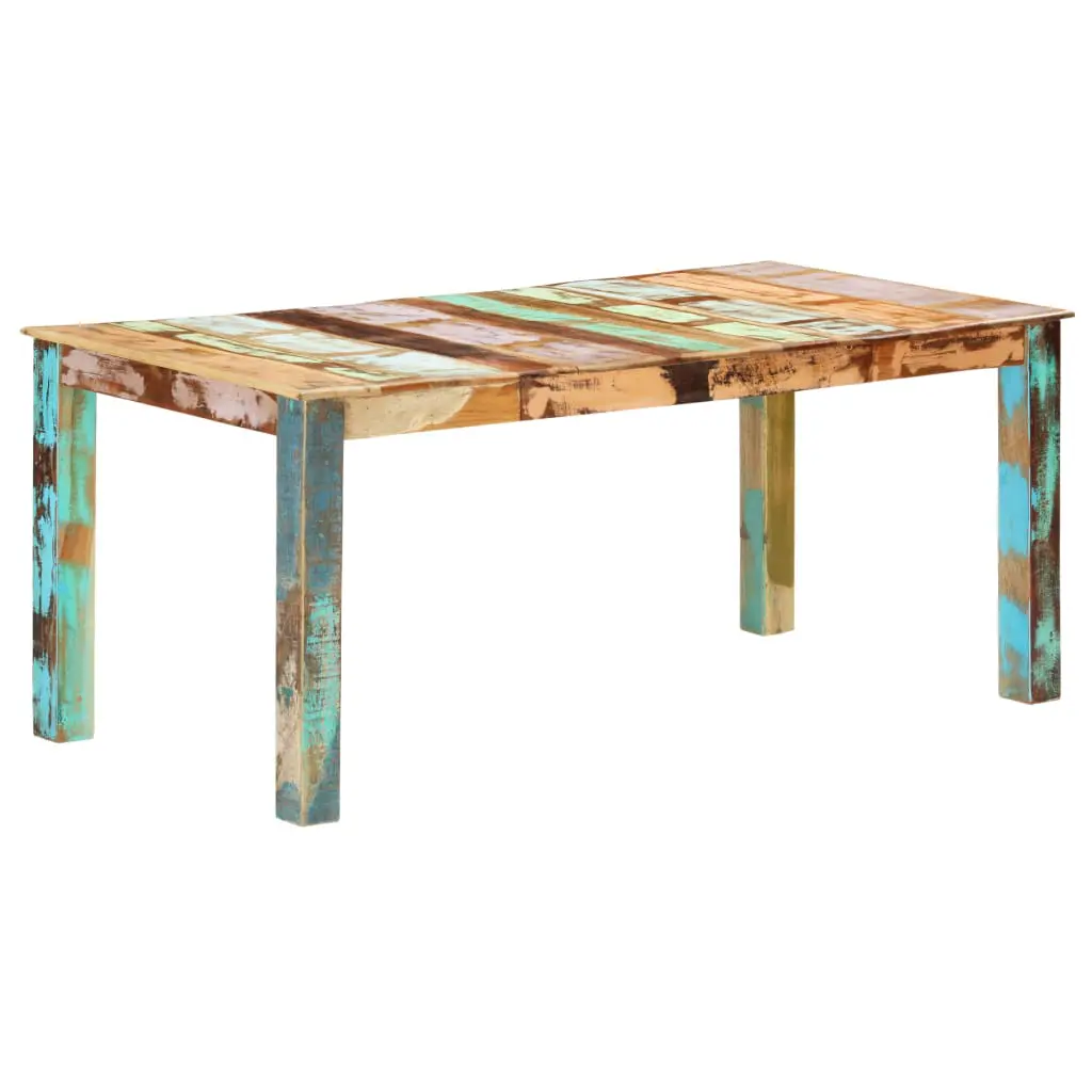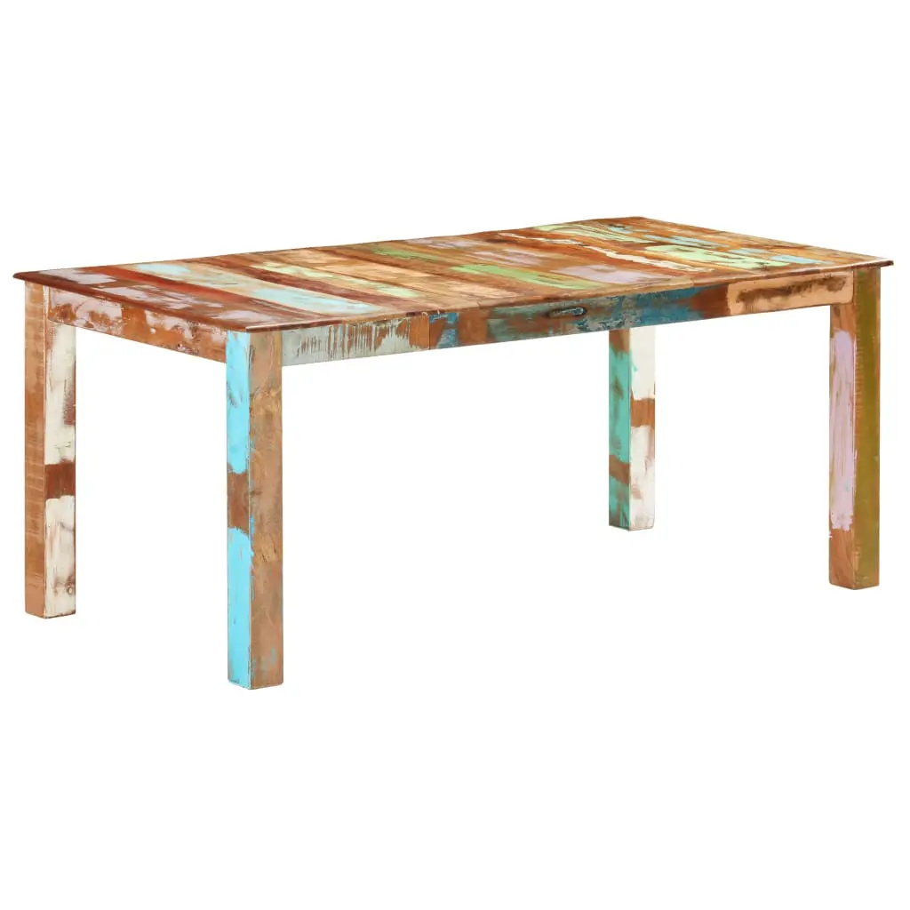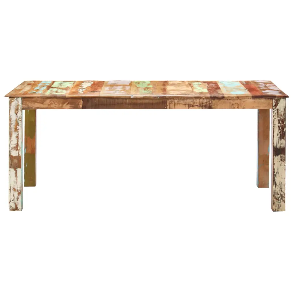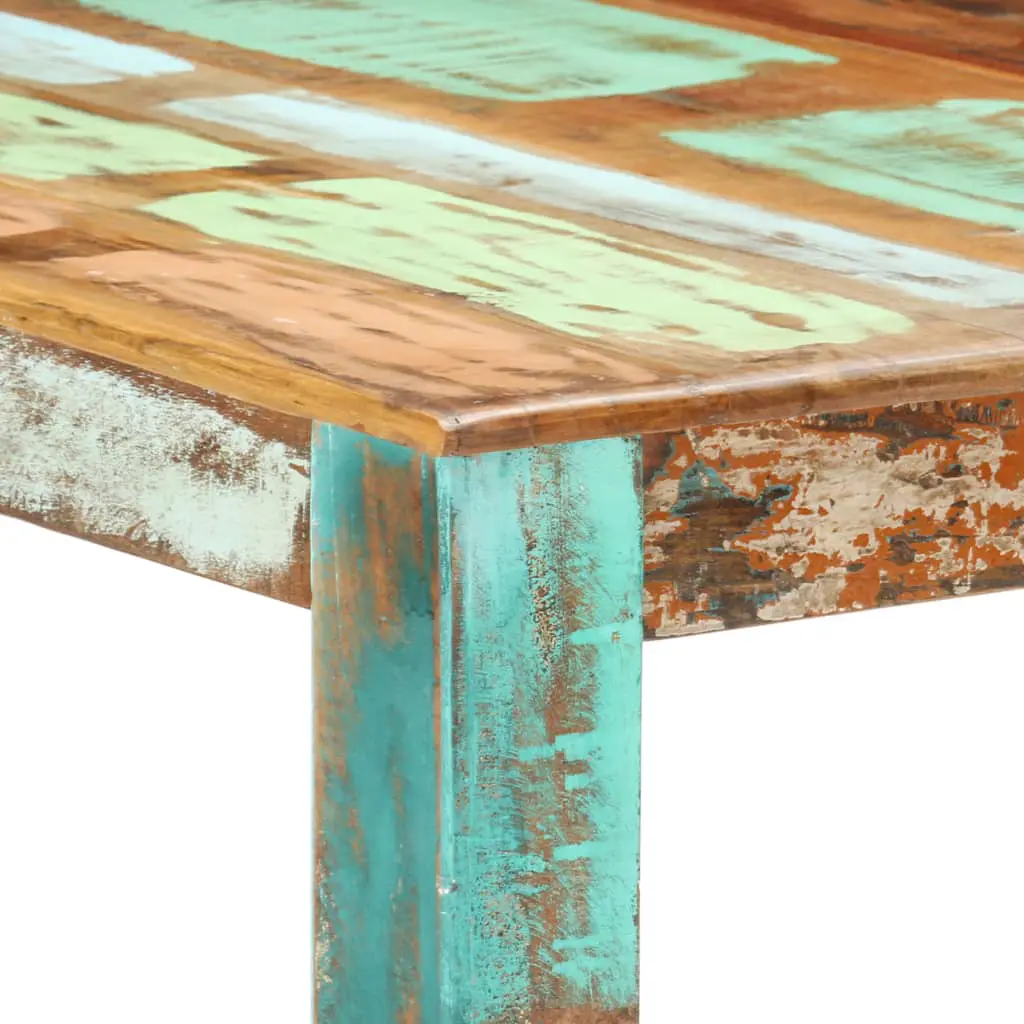 This antique-style reclaimed wood dining table will make a unique addition to your room. Its solid wood construction makes it stable and secure. Made of solid tropical reclaimed wood, the dinner table is solid, durable and beautiful, and has the characteristics of different woods like mango, hardwood, palisander, rosewood, teak etc. Every piece of this furniture is unique, and slightly different from the next. Signs of wear and visible grain structure give each piece its own history and a unique look. Every step of the process is carried out with the greatest care, be it polishing, painting or lacquering. The wooden table is also easy to assemble. Important note: Colours may vary from piece to piece, making each of our tables unique. The delivery is random.