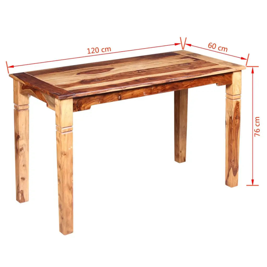 Our solid wooden dining table will make a timeless addition to your home. This elegant table is ideal for enjoying your meals with your family. It can also be used in the living room for placing your TV or displaying decorative items like photo frames, fruit baskets and vases. Crafted from solid sheesham wood with a honey matte finish, this retro-style table is durable, easy to maintain, and will bring a touch of rustic charm to your interior. Sheesham is a tropical hardwood that is famous for its rich grains and also known as rosewood or palisander. The sturdy legs add to its solid construction. The beautiful wood grains make each of our tables unique and slightly different from the others. Important note: The colours vary from piece to piece, making each of our tables unique; the delivery is random.