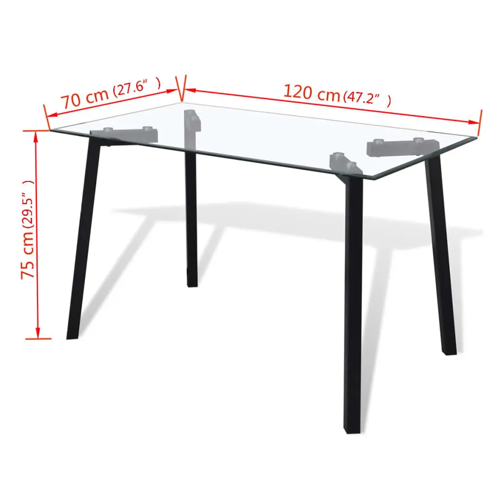 This sleek, modern dining table, designed with clean lines, will be a great choice for your dining room or kitchen. Its simple elegance will make everyday dinner special. This dining table with its tempered glass top features powder-coated steel legs, which give the table optimum stability and make it highly durable. It is also very easy to clean with just a damp cloth.