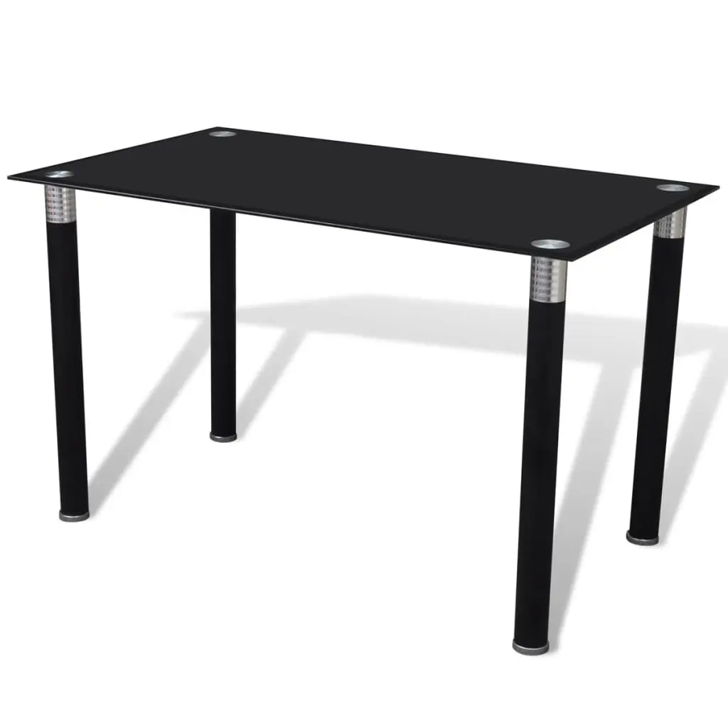 This sleek, modern dining table, designed with clean lines, will be a great choice for your dining room or kitchen. Its simple elegance will make everyday dinner special. This dining table with its tempered glass top features steel and plastic legs, which give the table optimum stability and make it highly durable. It is also very easy to clean with just a damp cloth.
