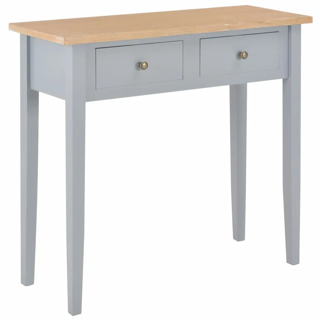 Our wooden console table, featuring a simple yet timeless design, will surely make a great addition to your living room, dining room, hallway, and more. The table features excellent workmanship combined with great functionality. Thanks to its compact design, our console table occupies very little space and fits into smaller areas. Two smooth-rolling drawers offer you additional space for your ornaments, cosmetics and other private belongings. This dressing table is constructed from high-quality MDF and pinewood with grey painted finish for durability, which gives you years of service.