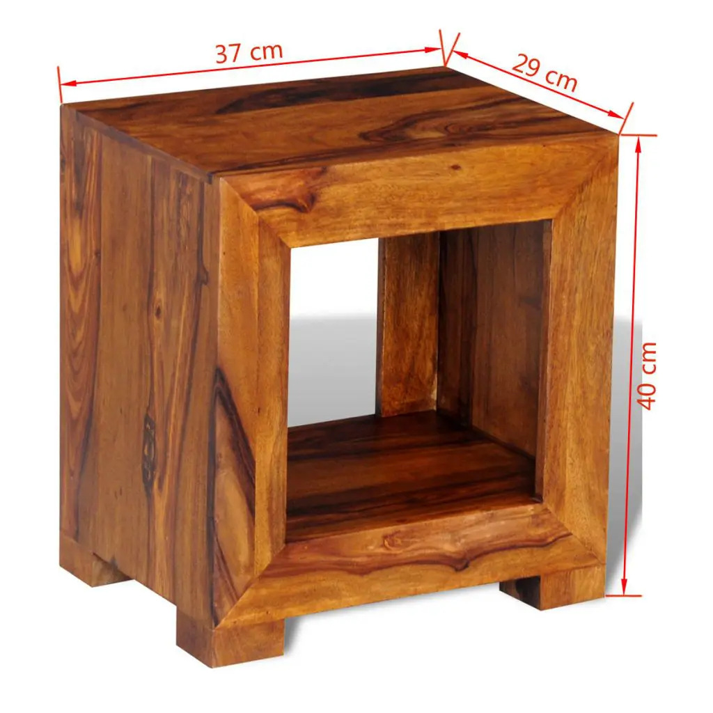 This sheesham solid wood side table is both stylish and practical. The elegant design will make this side table a focal point in any room. This side table has a sturdy top and a storage place below on which you can place books and magazines. This sheesham side table is made of solid wood. Sheesham is a tropical hardwood that is famous for its rich grains and also known as rosewood or palisander. Pure handmade craftsmanship and beautiful wood grains make every piece of furniture unique and slightly different from the next. Important note: Colours vary from piece to piece, making each piece unique; the delivery is random.