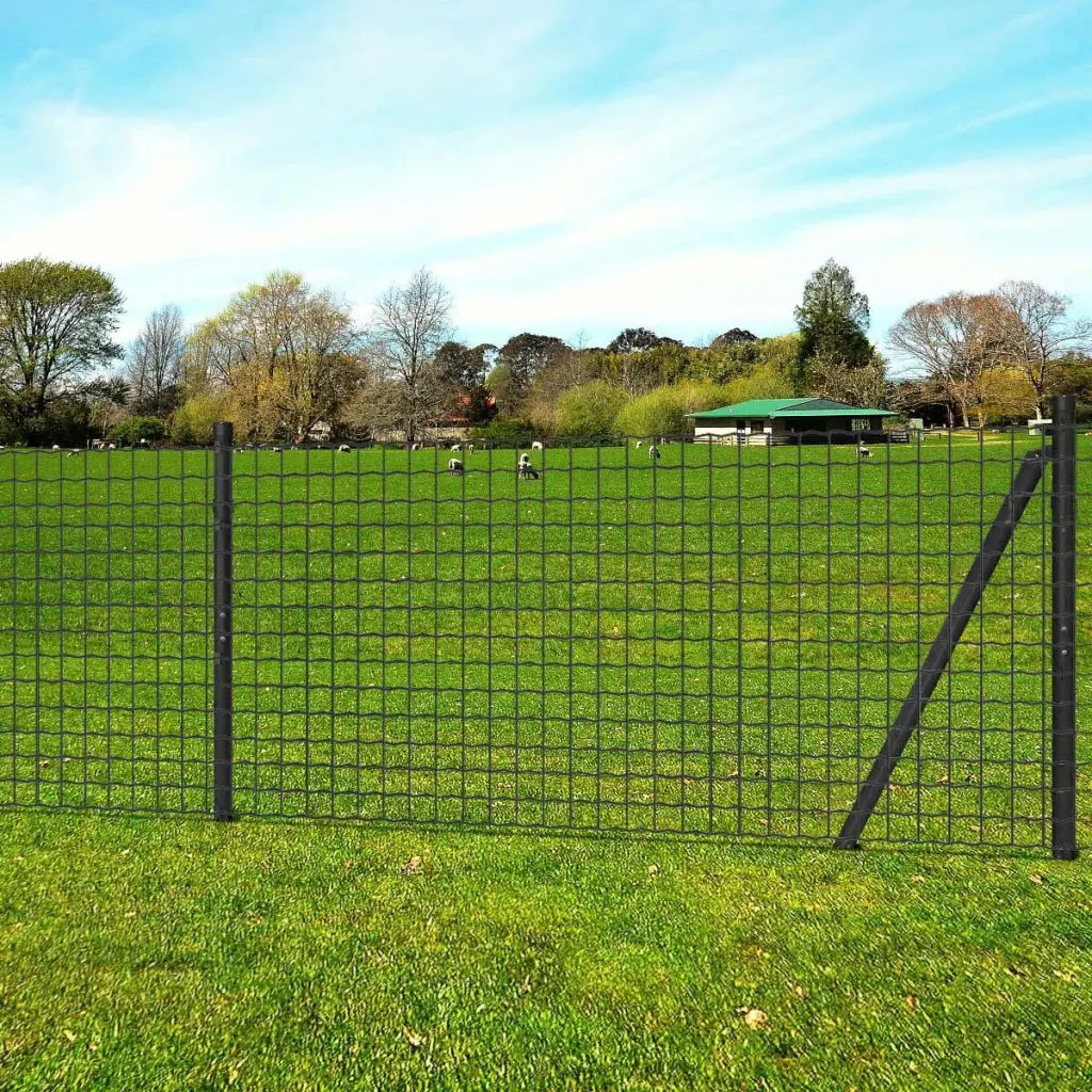 This euro fence set contains everything you need to erect a sturdy and easy-to-install fence. It can be used as an ordinary perimeter fence or a barrier for animal enclosures or facilities. The set is delivered with straight and strive posts and installation accessories including post caps, wire clamps and screws. The fence has a strong construction. The PVC-coated wire mesh is resistant to weathering, corrosion and UV radiation. The euro fence set can be installed quickly and easily.