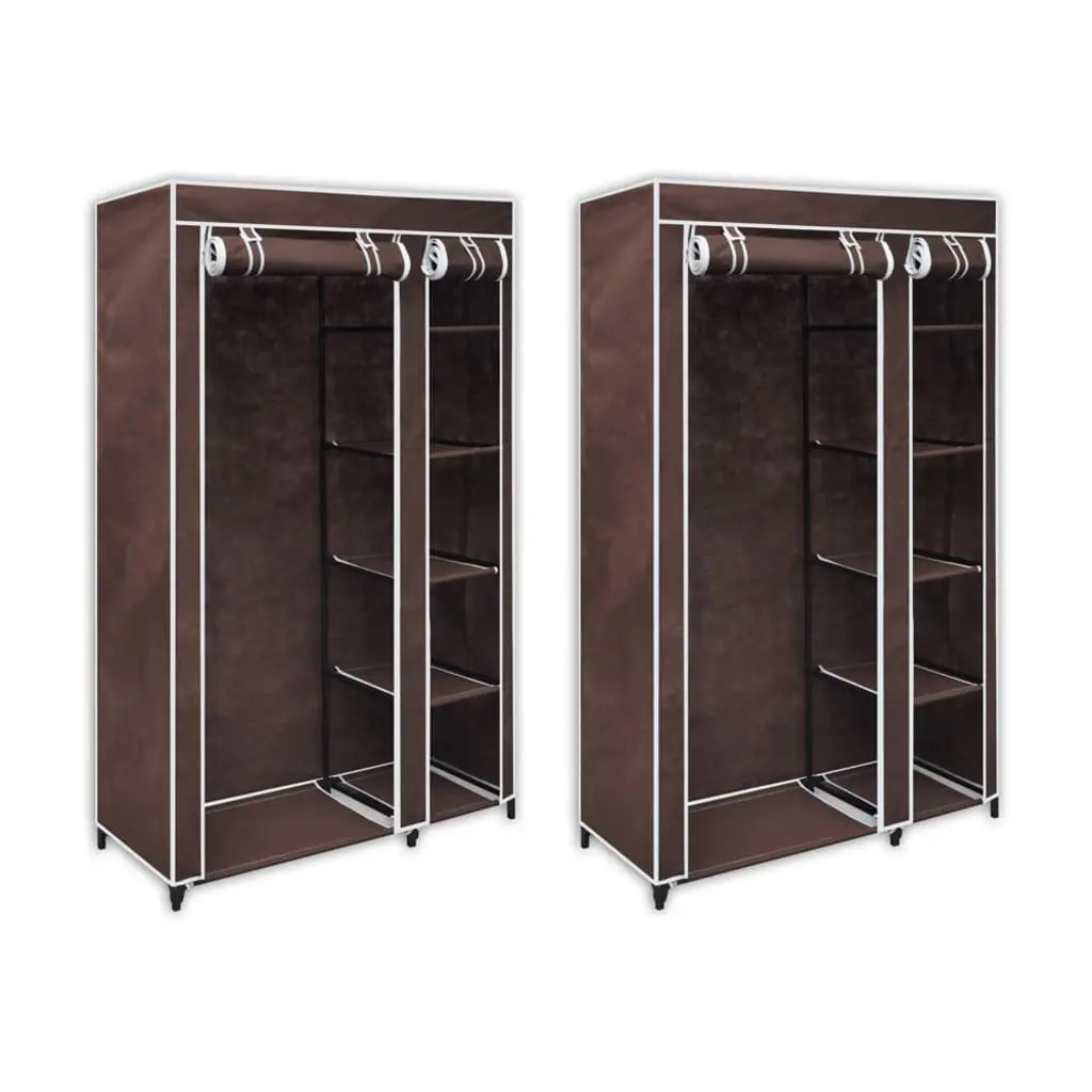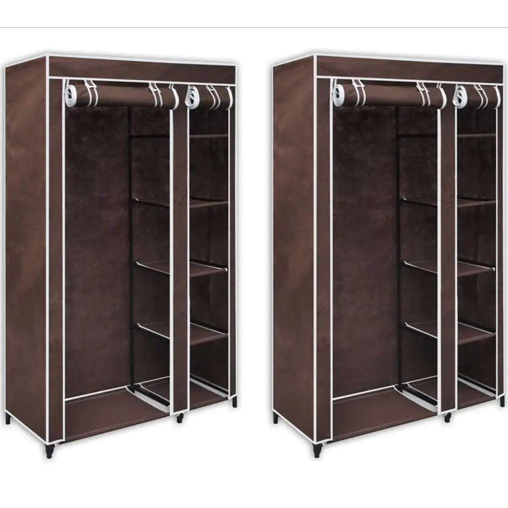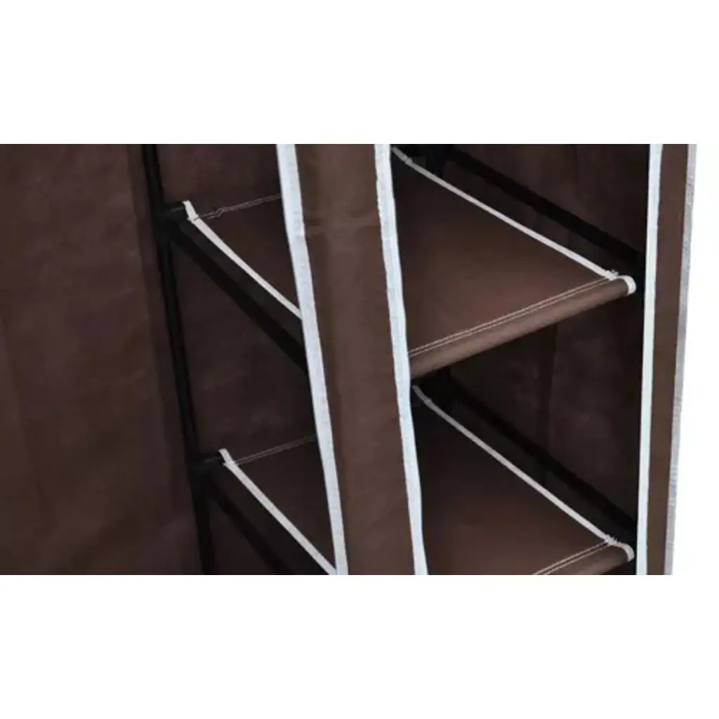 This folding wardrobe is suitable in the basement, bedroom, the attic, as a portable wardrobe for camping etc. Your clothes will always be very well kept. Because it is foldable it is space saving and easy to assemble. The rolled up door is attached with hook and loop fasteners, the door protects your clothes from dust and dirt. The zippers are to easily open and close the doors. The cloth is made of fleece fabric and the frame is made of steel tubes. This delivery consists of 2 folding wardrobes.