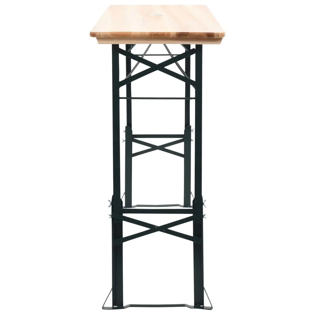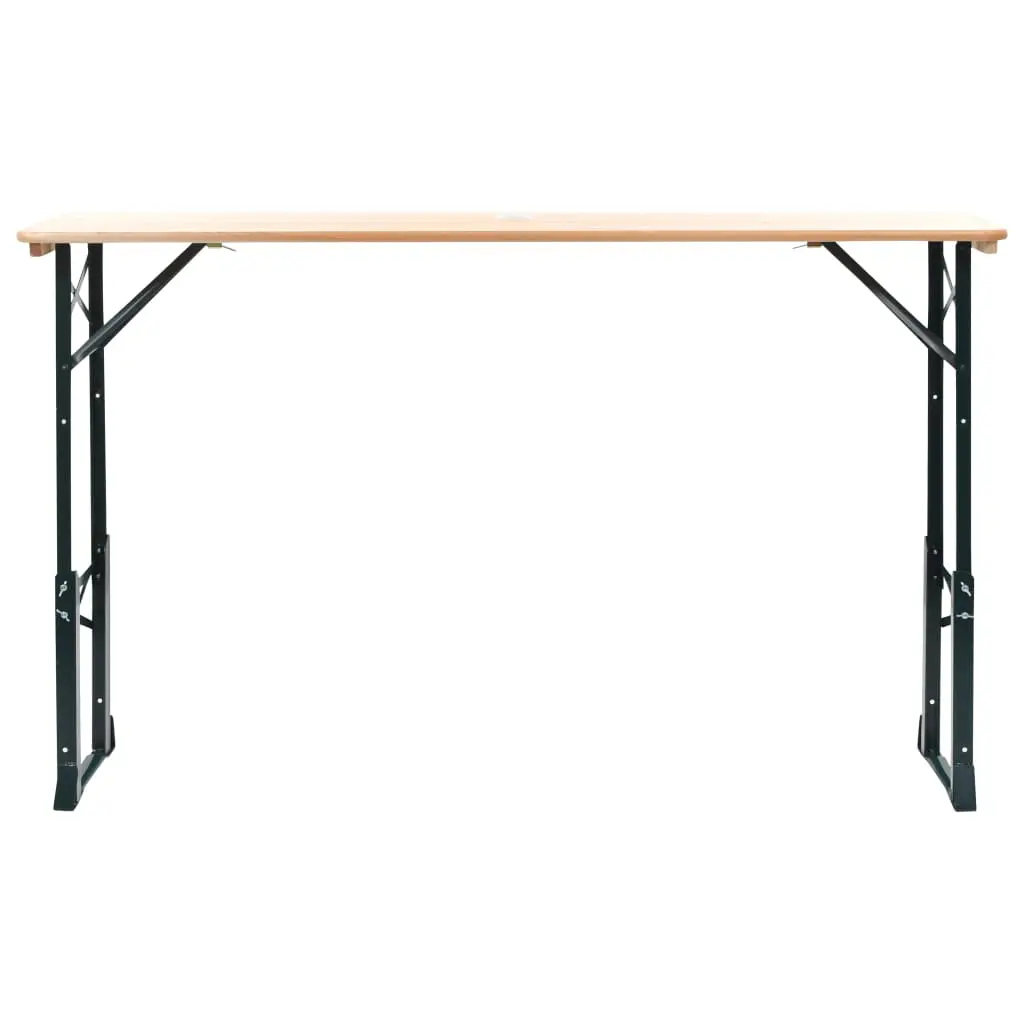Looking for a folding table for your upcoming birthday party or casual gathering? This wooden beer table will have you covered! The concisely-designed table has a classic look that will never go out of style. Constructed from quality pinewood and a sturdy metal frame, it is very durable. With a length of 169 cm, the large table is ideal for those occasions when you have plenty of guests around. With an adjustable height of up to 105 cm, this folding table is a must-have for your parties, as everybody will gather around the table while drinking or chatting. Thanks to the varnished finish, the table is easy to clean and maintenance free. When not in use, it can be folded and stored upright to save space. In addition, the table has a central hole for putting up a parasol. Please note that wood is a natural product and can show imperfections.