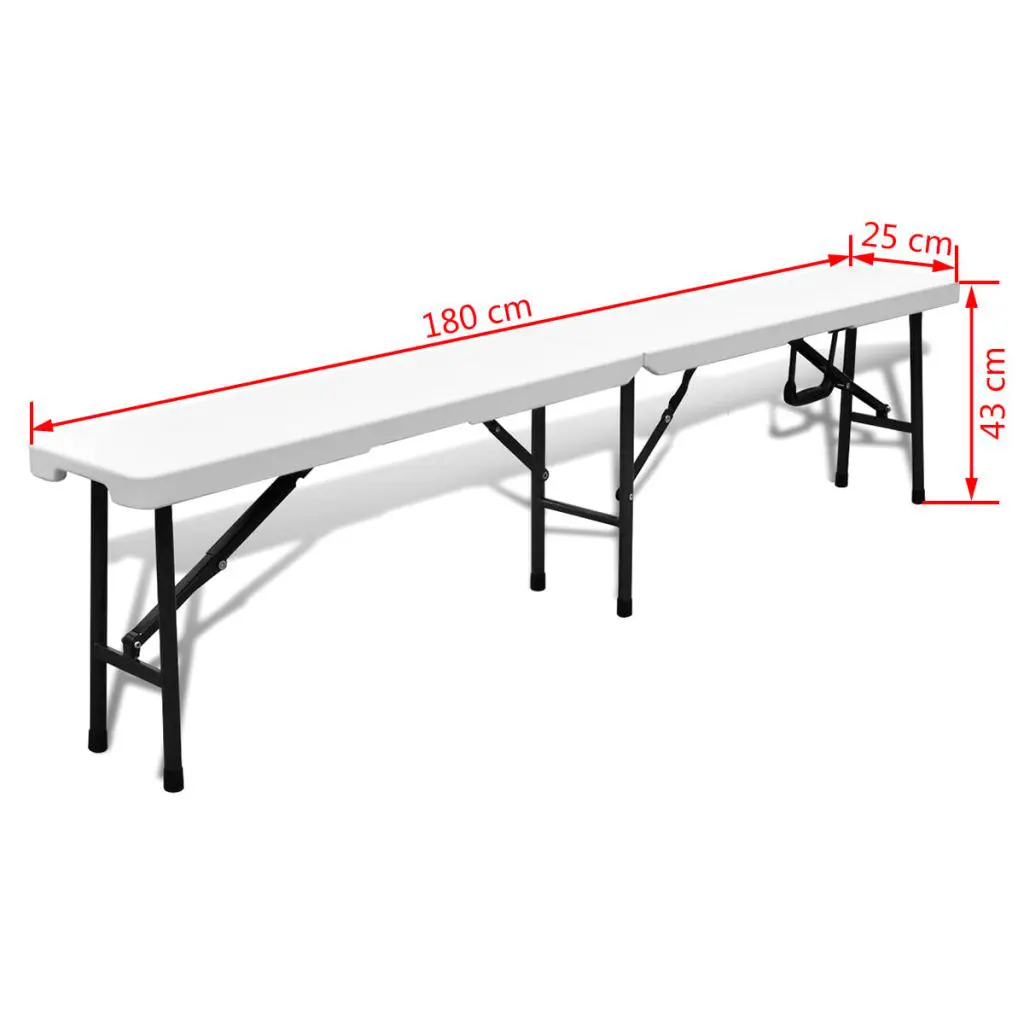 This practical foldable bench set will be perfect for picnics, parties, and camping trips. With a length of 180 cm, the garden bench offers ample space. The steel frame makes it highly stable and durable. In addition, the weather-resistant and waterproof HDPE plastic makes the bench easy to clean. And since it is light in weight, the bench is easy to transport. The bench can be easily folded when not in use to save more storage space. When the benches are folded, they are convenient to carry thanks to the built-in carrying handle. This foldable garden bench set will be an ideal choice for your outings.