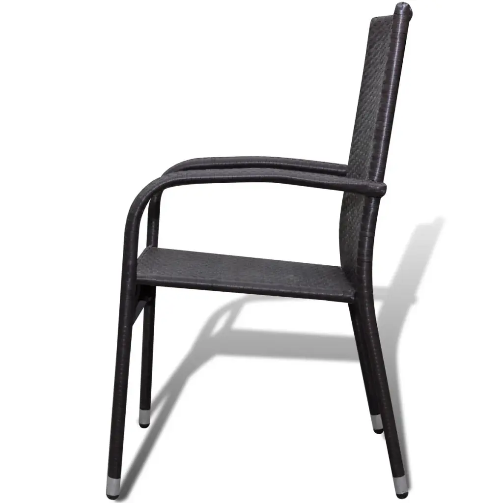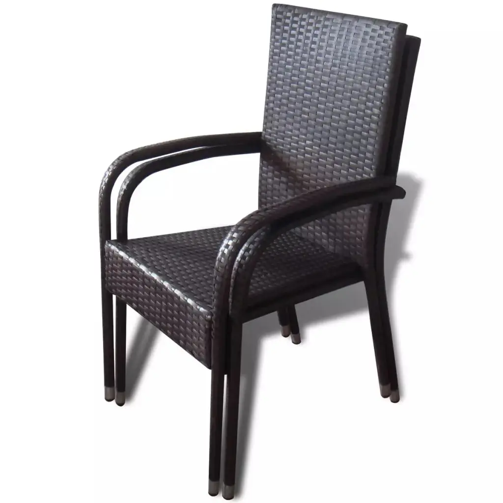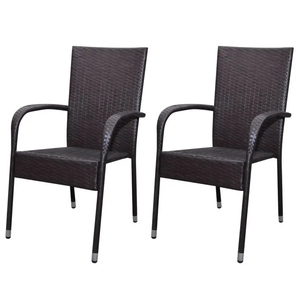 This rattan dining chair set will make a great addition to your outdoor space. Its understated style will give your patio or garden a modern flavour. Made of weather-resistant and waterproof PE rattan, the outdoor dining chairs are easy to clean, hard-wearing and suitable for daily use. The powder-coated steel frame and the aluminium feet make the chairs very sturdy and durable. Thanks to the lightweight construction, the chairs are easy to move. The chairs can be stacked together when not in use. Delivery includes 2 dining chairs. Note: We recommend covering the chairs in the rain, snow and frost.