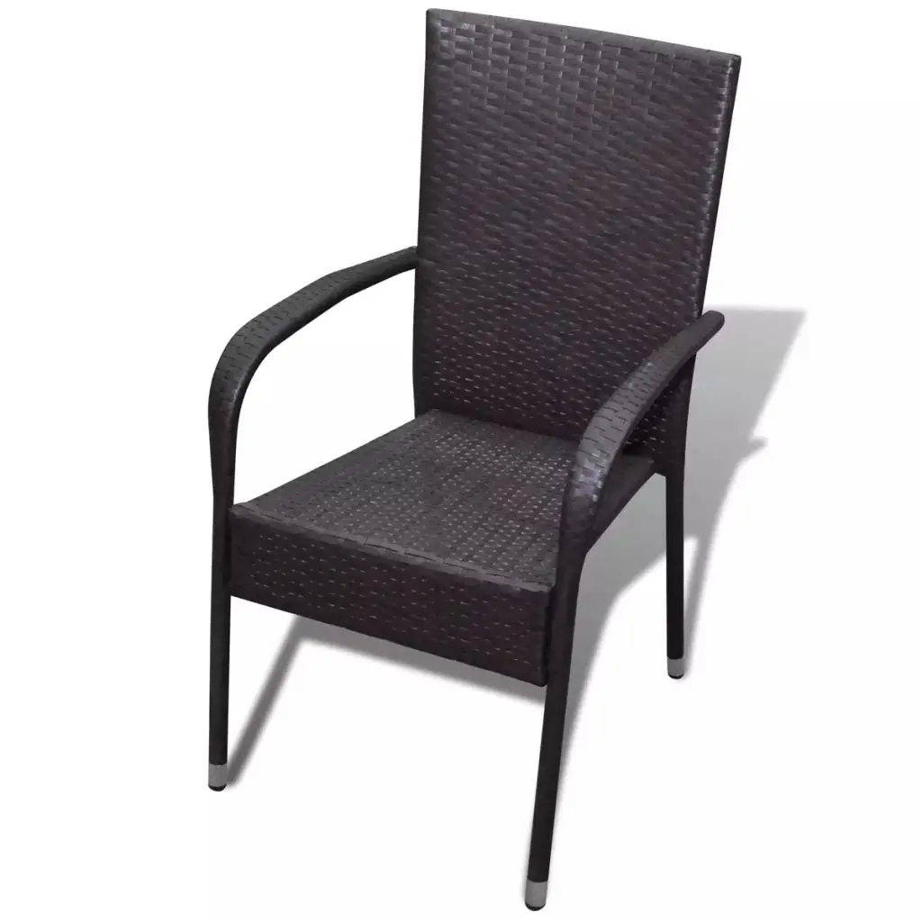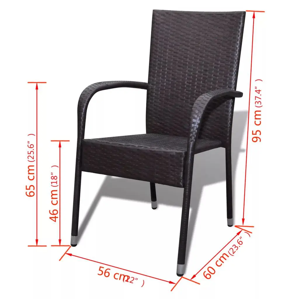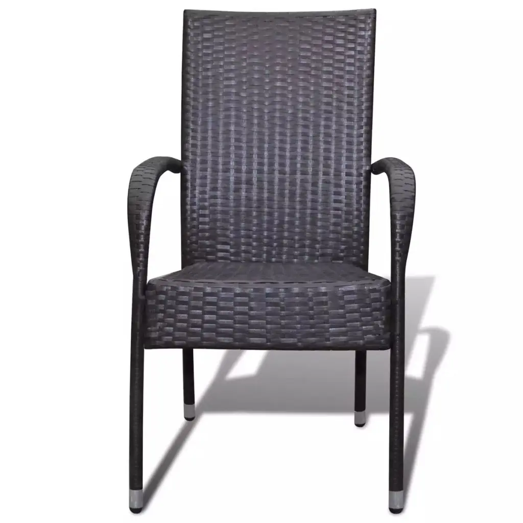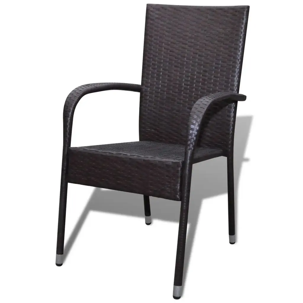 This rattan dining chair set will make a great addition to your outdoor space. Its understated style will give your patio or garden a modern flavour. Made of weather-resistant and waterproof PE rattan, the outdoor dining chairs are easy to clean, hard-wearing and suitable for daily use. The powder-coated steel frame and the aluminium feet make the chairs very sturdy and durable. Thanks to the lightweight construction, the chairs are easy to move. The chairs can be stacked together when not in use. Delivery includes 2 dining chairs. Note: We recommend covering the chairs in the rain, snow and frost.