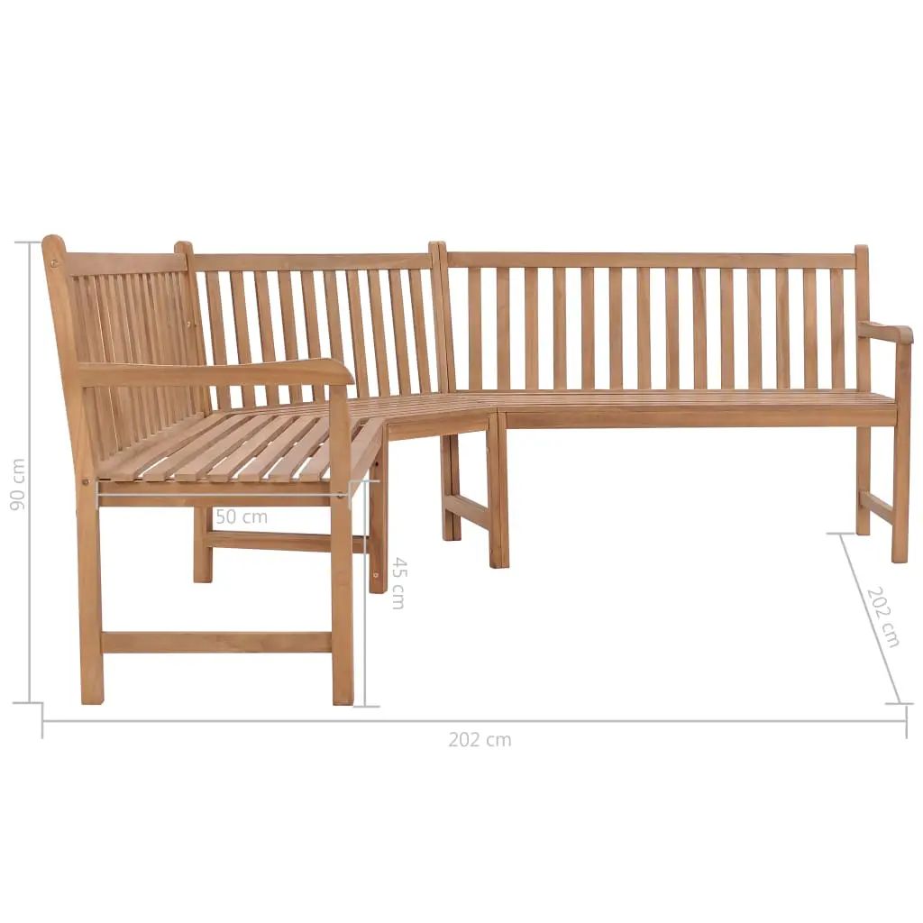 This outdoor wooden corner bench, with a wide seating area, will add a touch of rustic charm to your garden or other outdoor living space. Constructed from extremely durable teak hard wood, this piece of teak furniture has been seasoned, kiln dried and then fine sanded to give a very smooth appearance. Teak wood is known for its exceptional strength and weather resistance, making it far more suitable for garden furniture than any other kind of wood. Teak wood is the perfect choice if you want to purchase a long lasting piece of garden furniture. The bench seat and backrest slats offer great support and optimal seating comfort. The corner bench needs assembly.